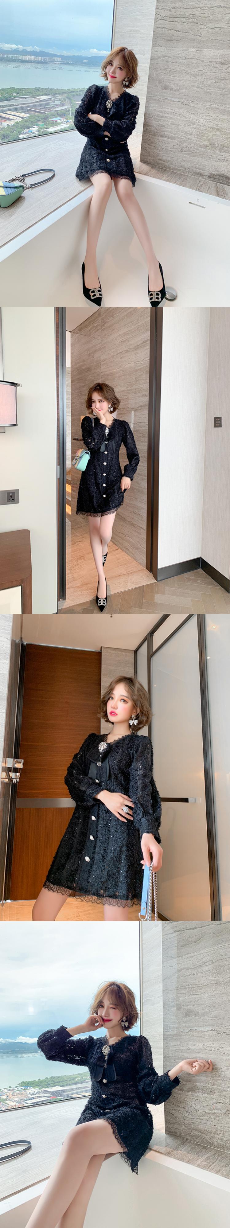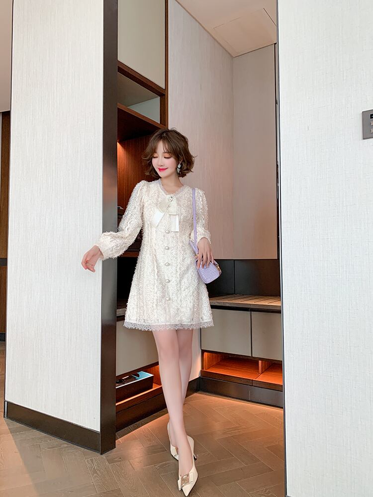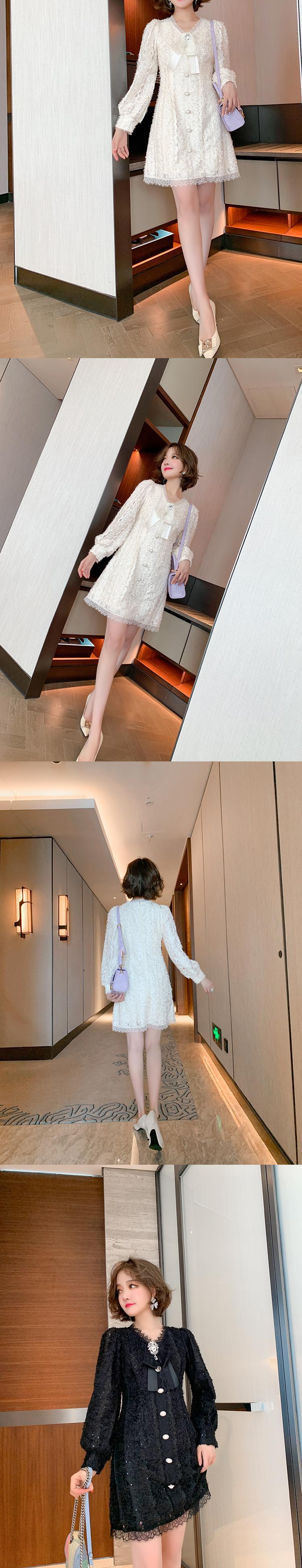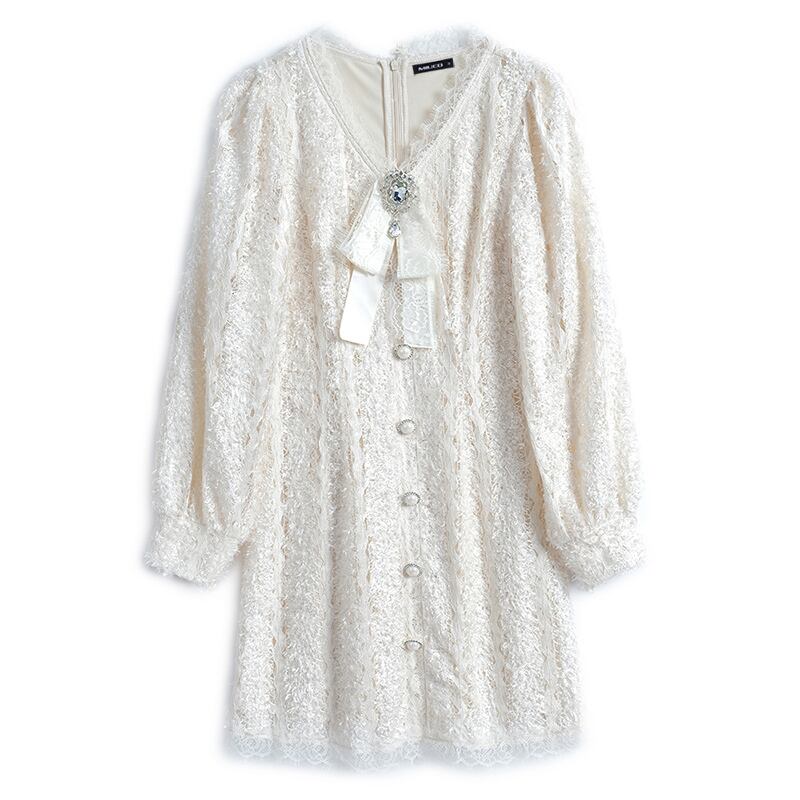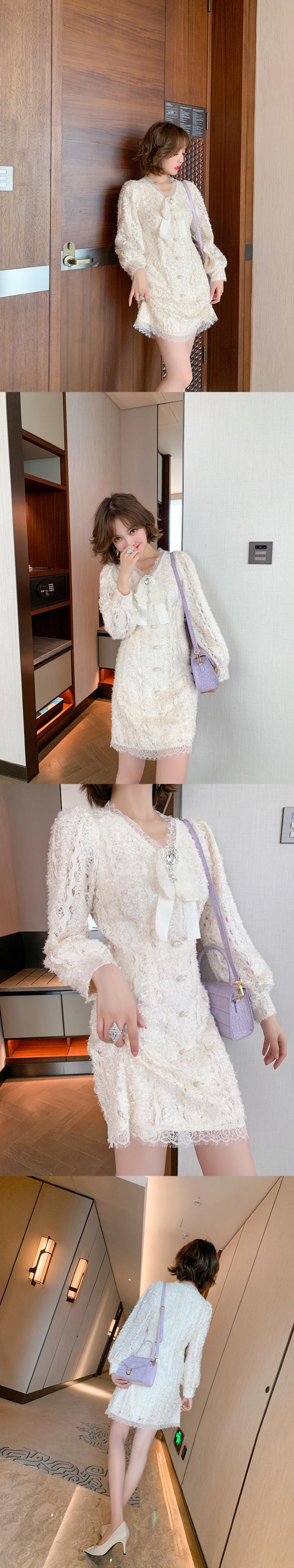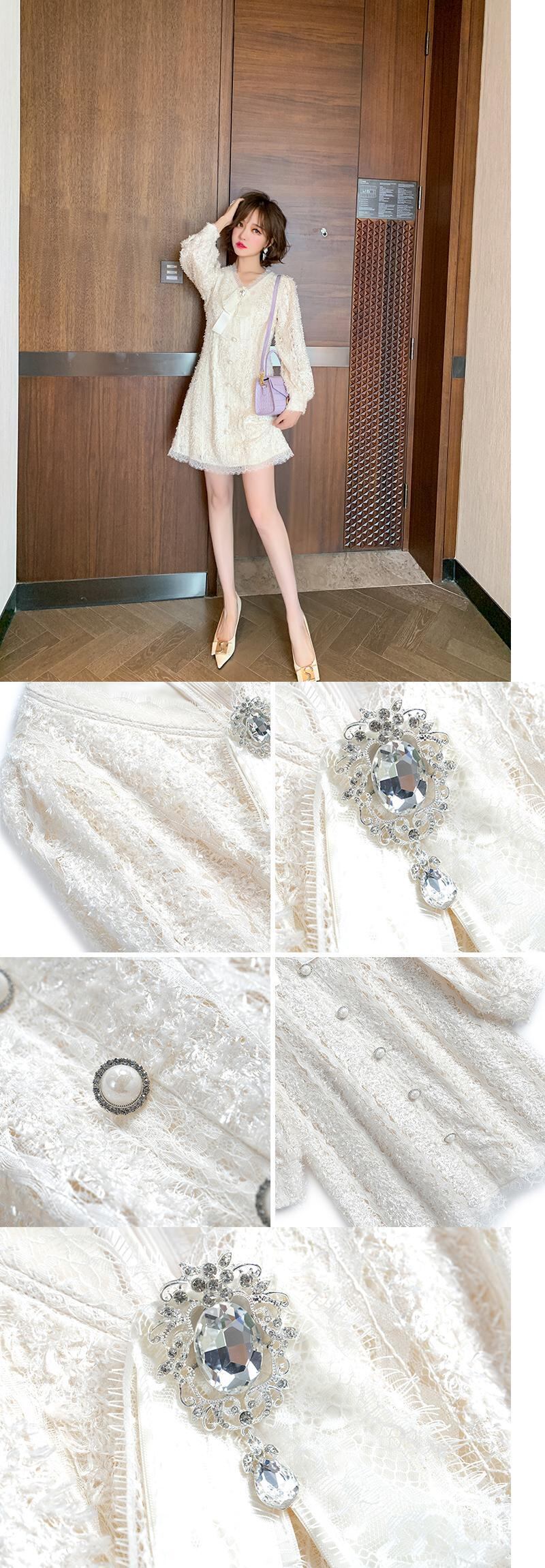 レースVネックリボンバックルウェストドレス オータム 秋物 MIUCO62574338768
