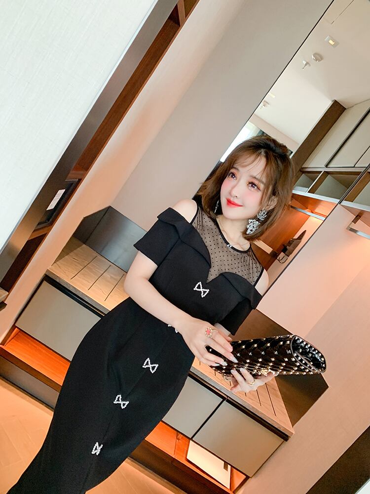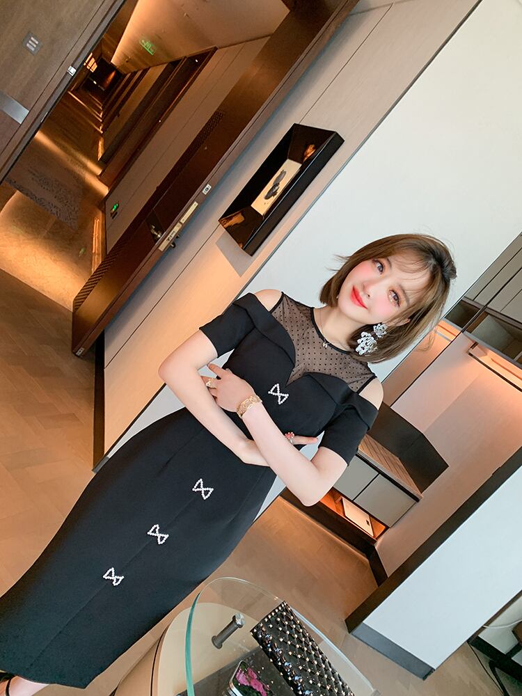 水玉メッシュトップス シングルブレストウェストドレス オータム 秋物 Oネック ステッチ MIUCO16864873880