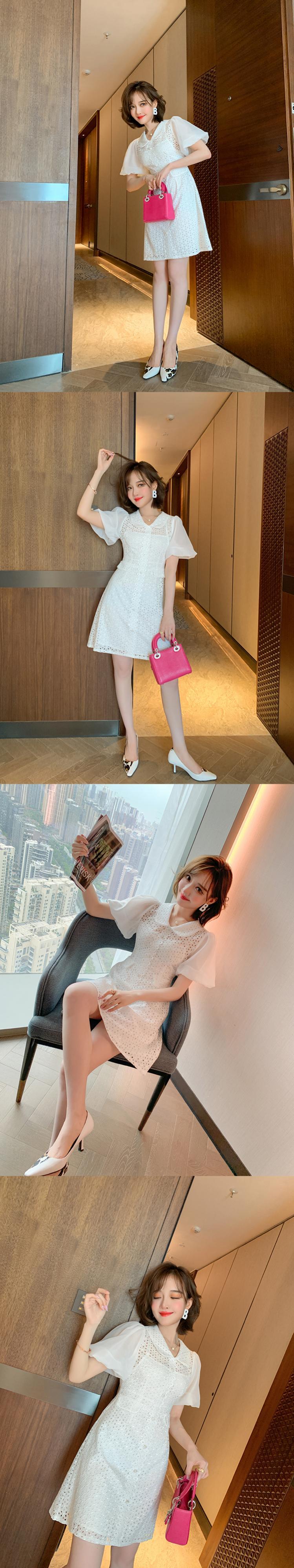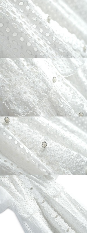 刺繍カラーボタンスリーブウェストドレス レディース ランタンスリーブ MIUCO74088445474