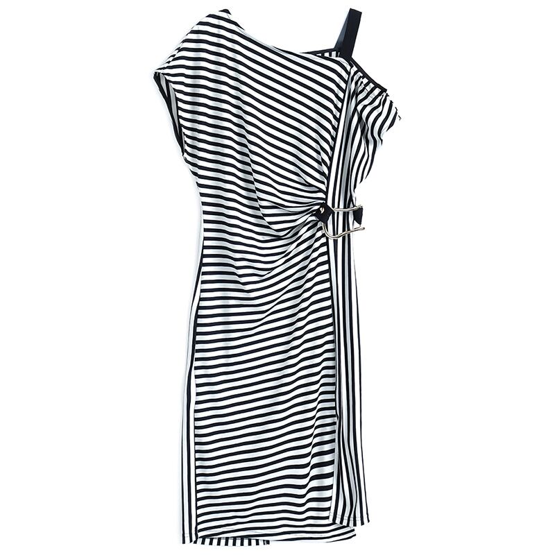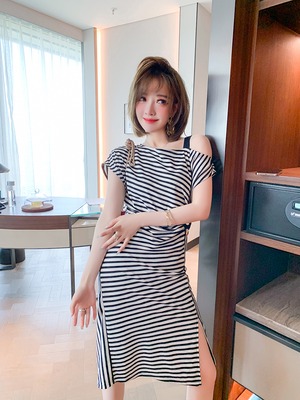 ストラップレスカラープリーツスカート ストライプドレス サマースタイル 夏物 MIUCO21393761162