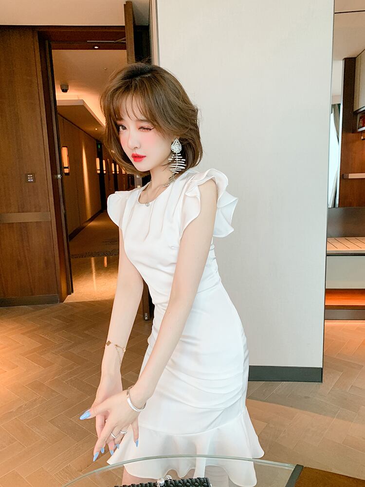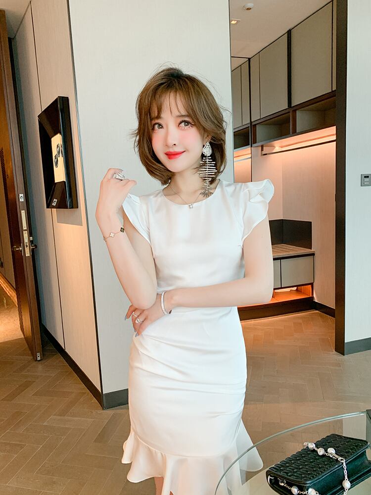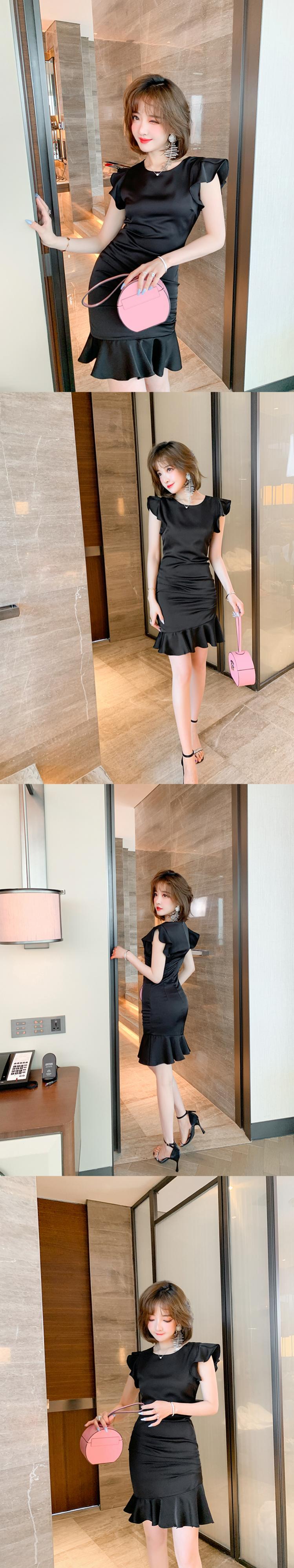 ソリッド カラーラウンドネックスリムフィットドレス オータム 秋物 Oネック ソリッドカラー MIUCO74189565009