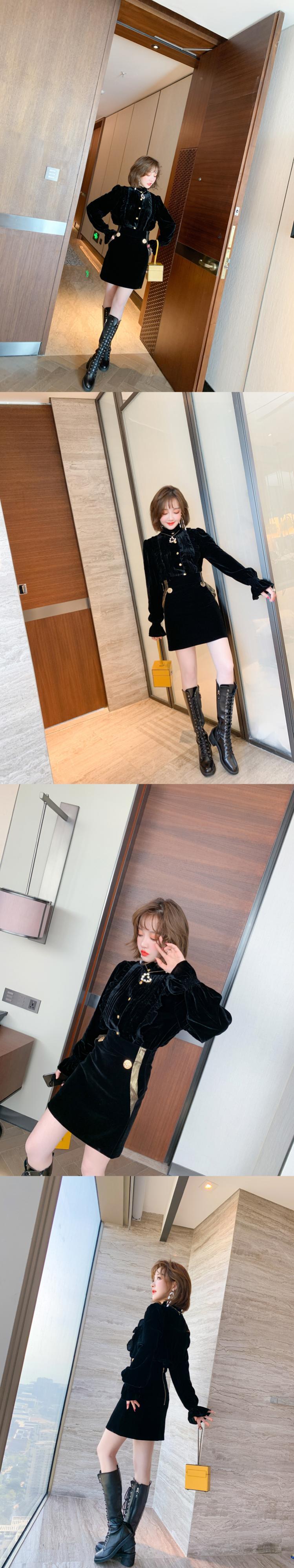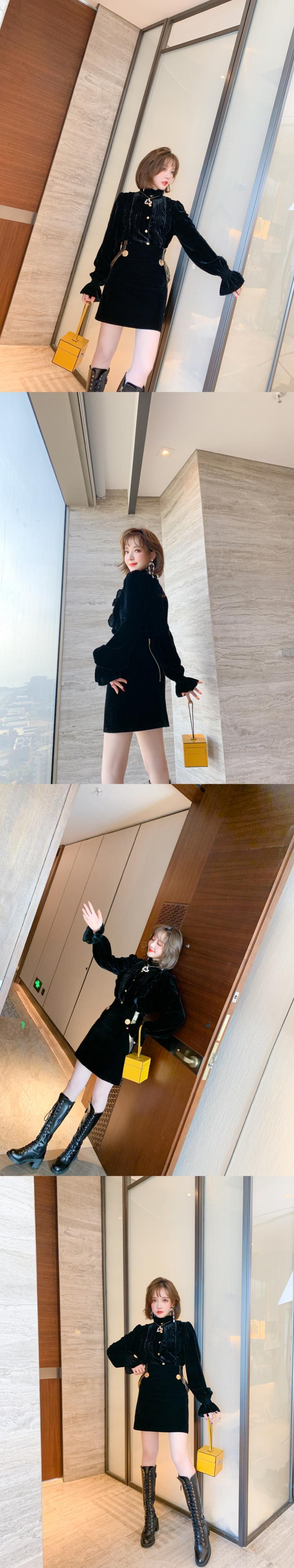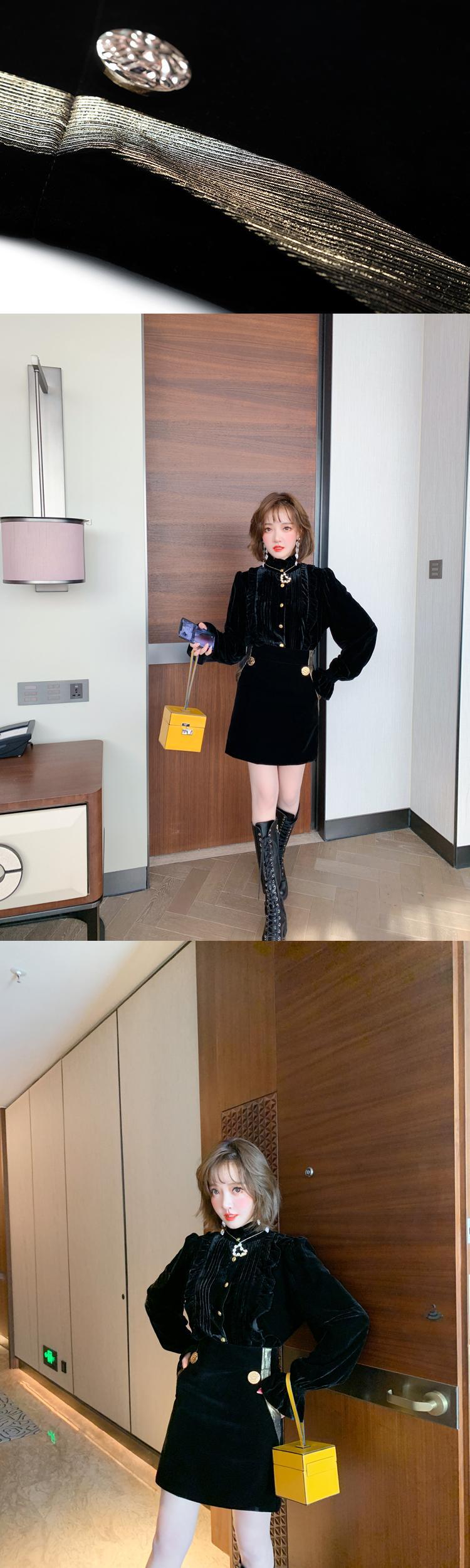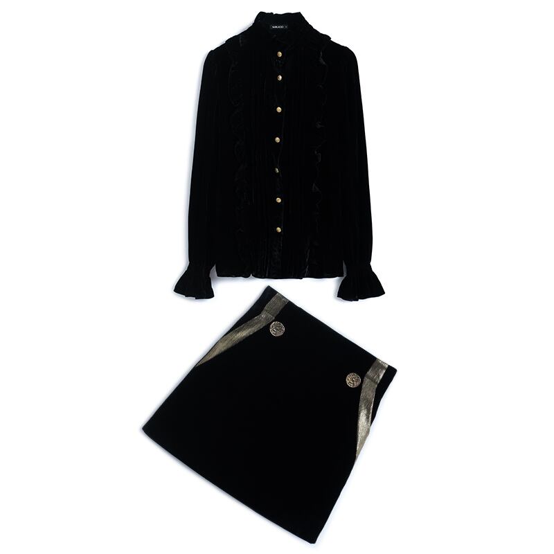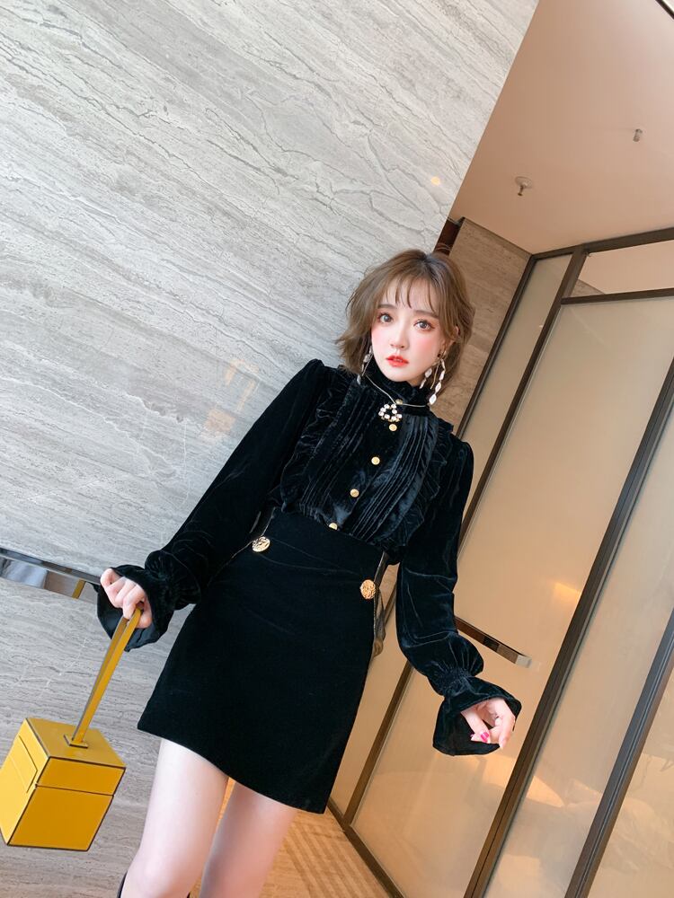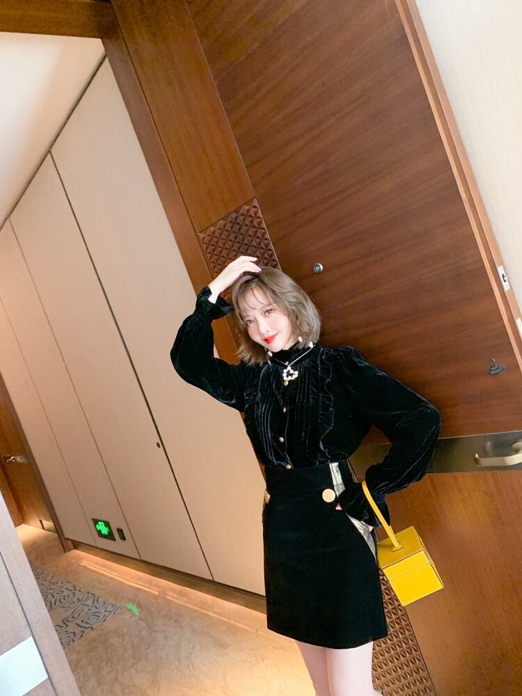 カラープリーツベルベットシャツ ハイウェストウェストスカート スプリング 春物 MIUCO57562646277