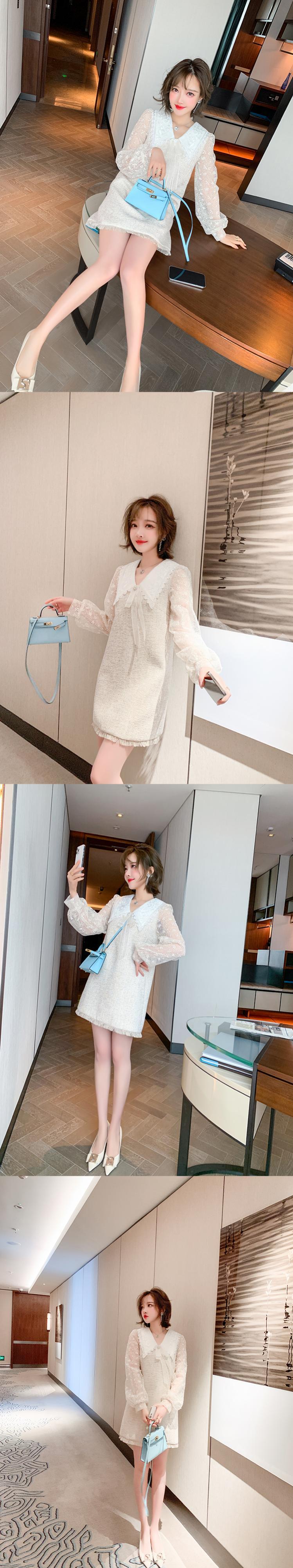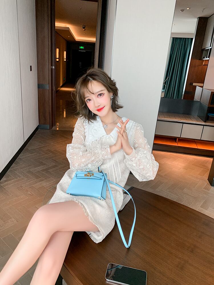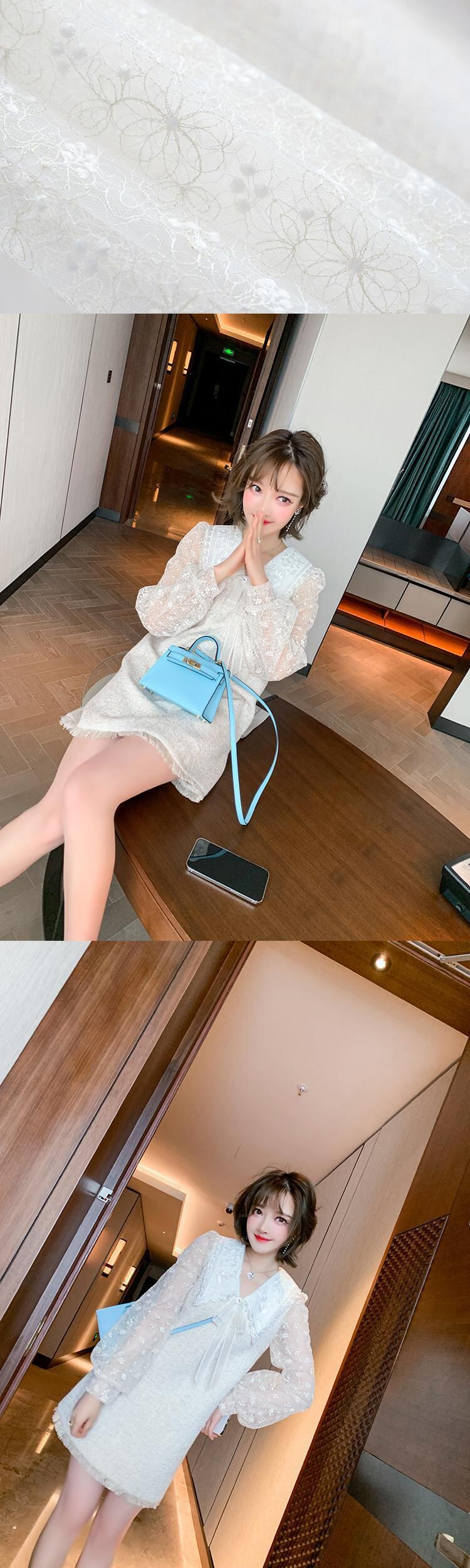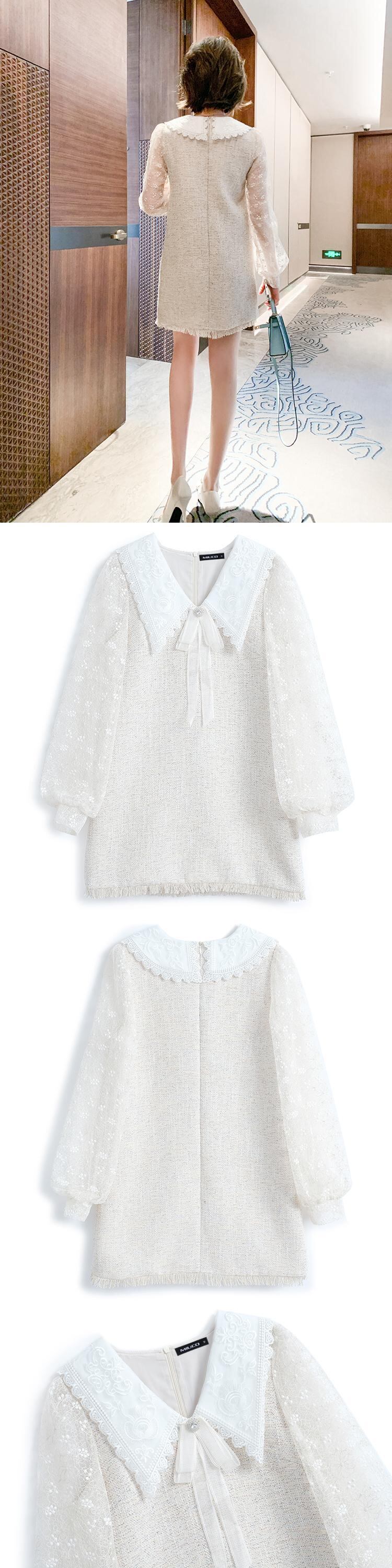 レースカラースリーブルーズドレス スプリング レッド 刺繍 春物 MIUCO72596172585