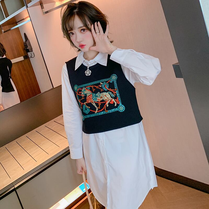 シャツ ドレス スタンダードノースリーブスプリング レトロ 春物 MIUCO70391111209