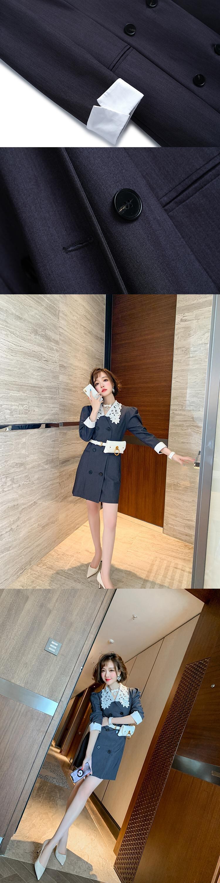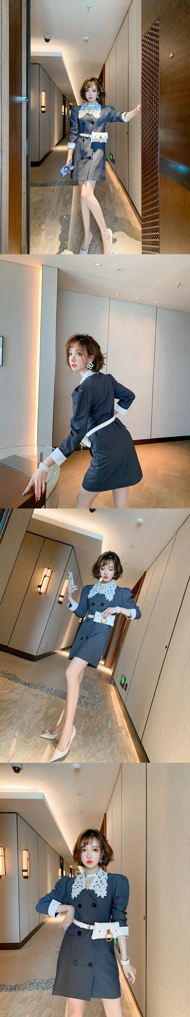 レースウェスト薄手ダブルブレストドレス オータム 秋物 MIUCO93291886284