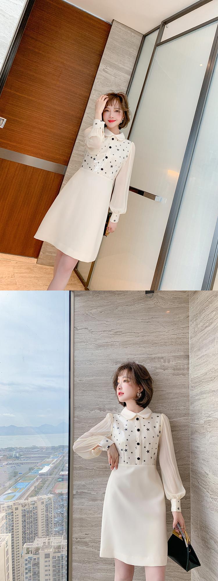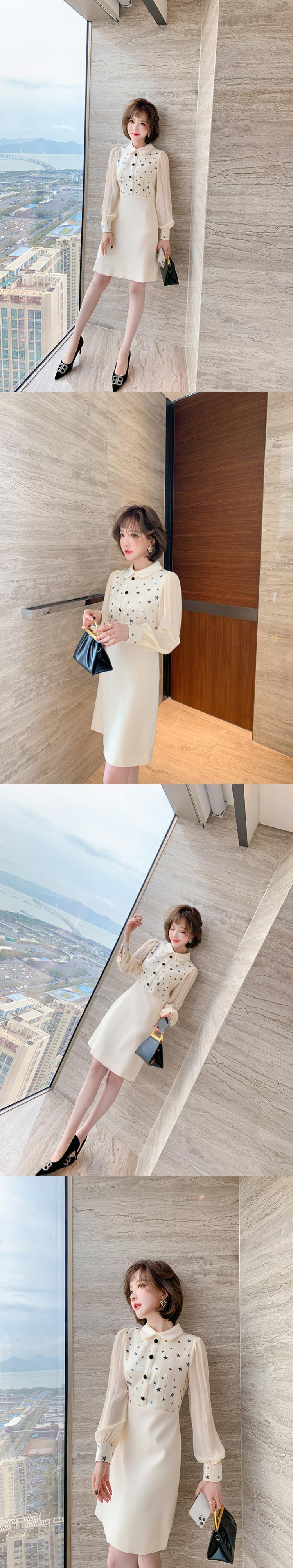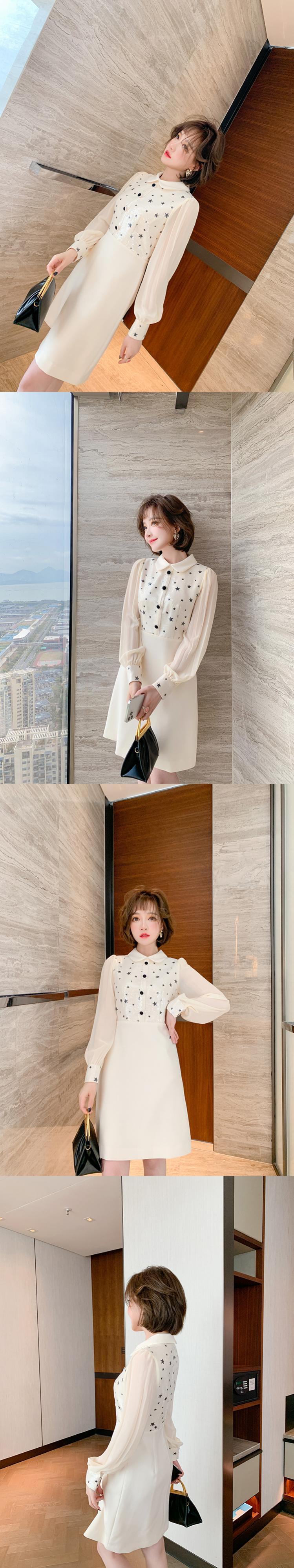 プリント柄ボタンウェストスリムドレス スプリング 春物 MIUCO21237607009