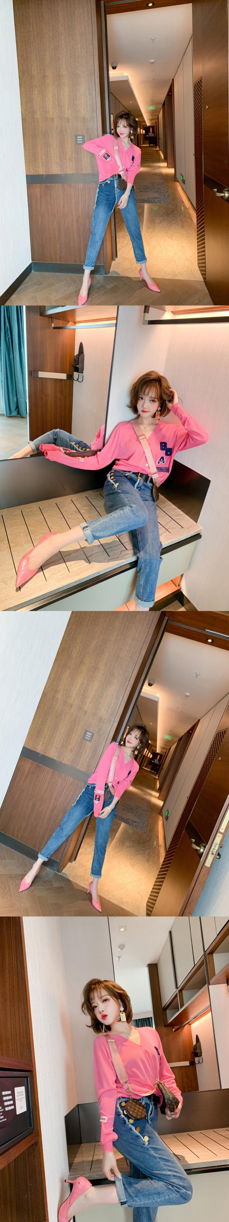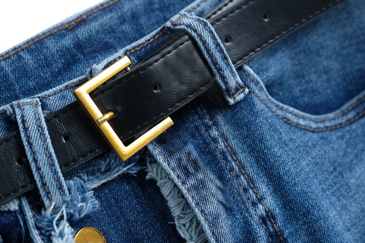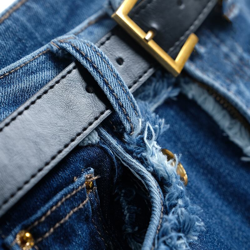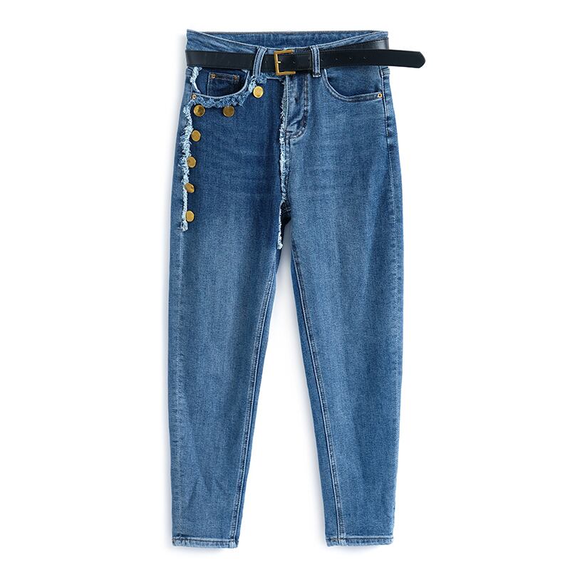 ハイウェストスリム薄手ボタンジーンズ スプリング 春物 MIUCO93751643665
