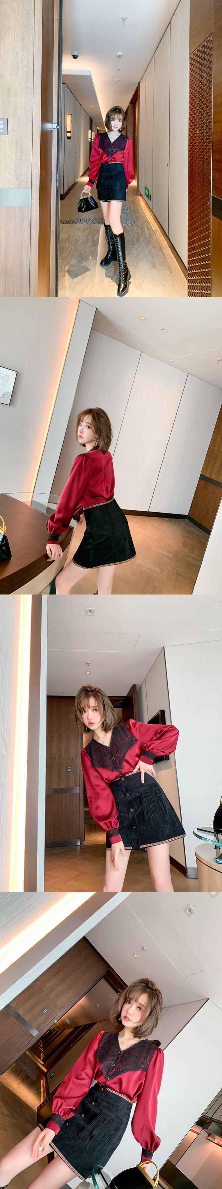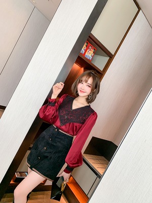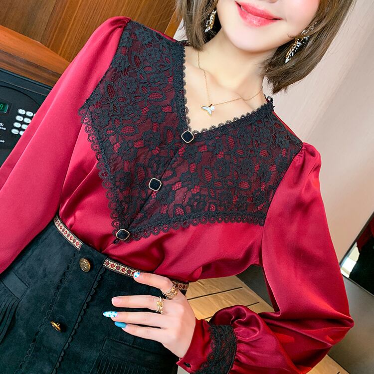 Vネックレースルーズシャツ ウィンター 冬物 ステッチ MIUCO30437779562