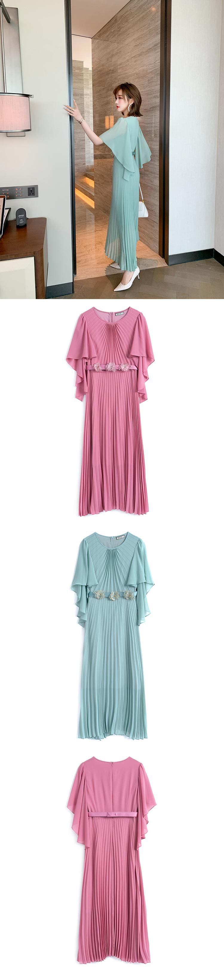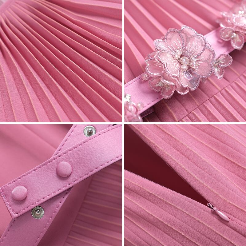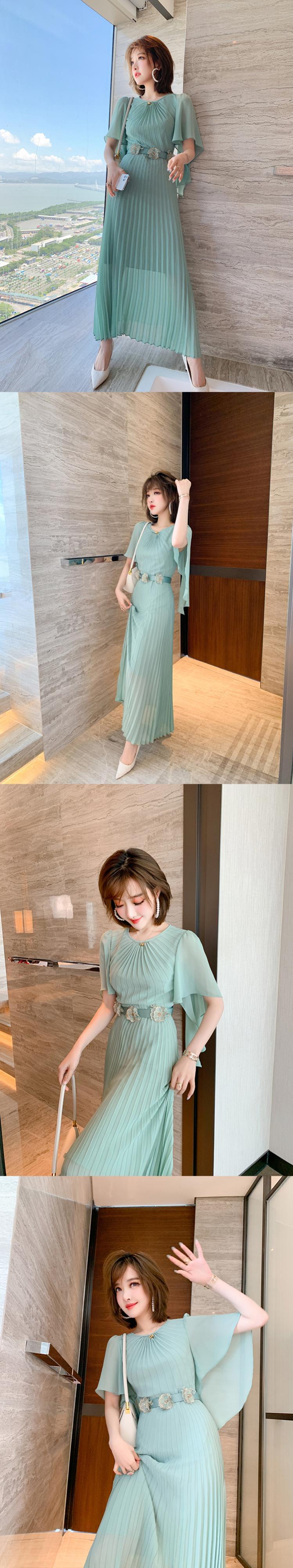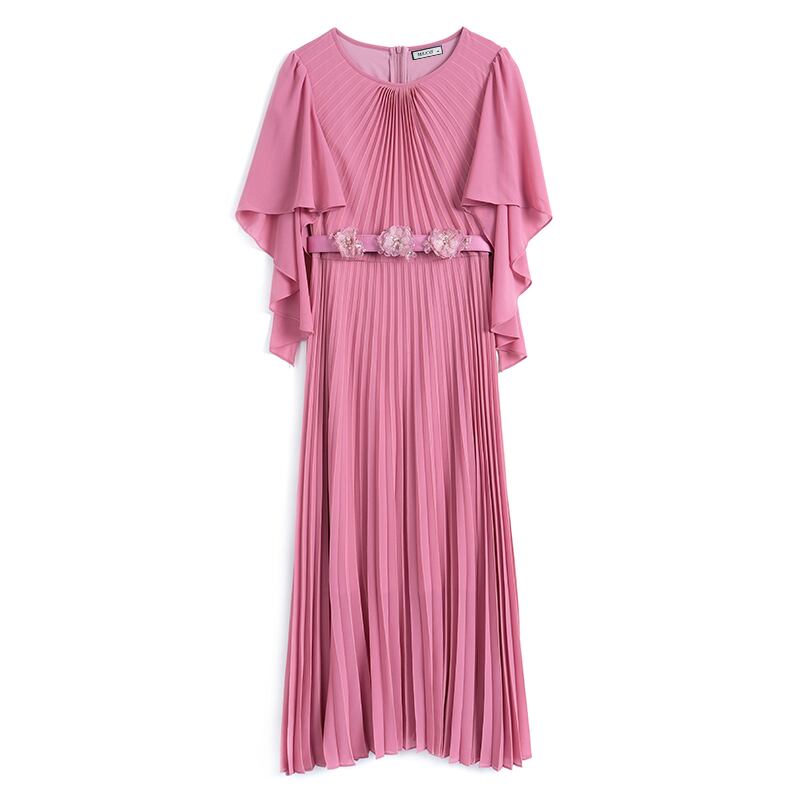 プリーツFlowerデザイン ウェストロングスカート ドレス オータム エレガント 秋物 フラワーデザイン MIUCO12015967851