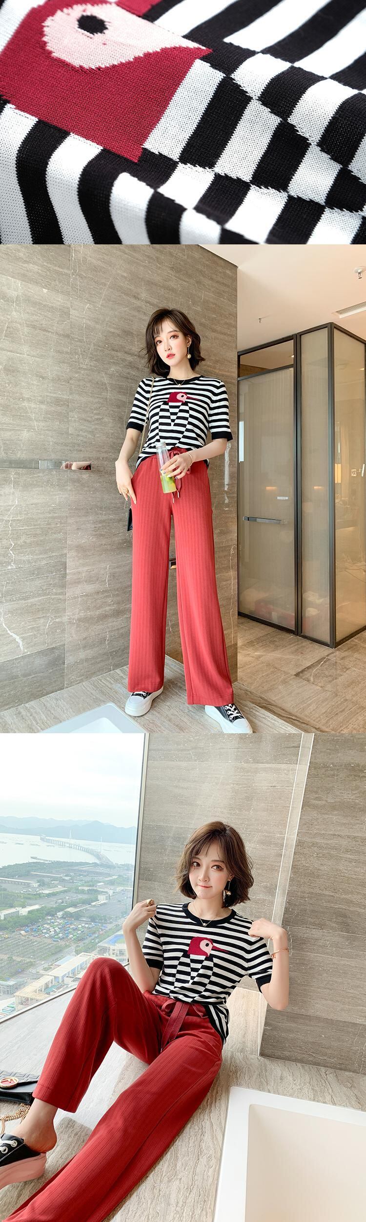 パターン薄手ニットセーター Tシャツ トップス サマー 夏物 MIUCO34486501659