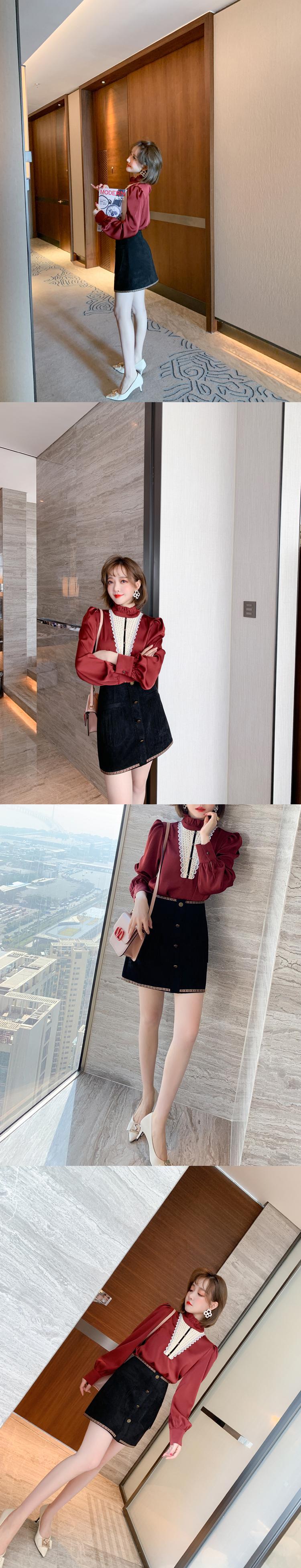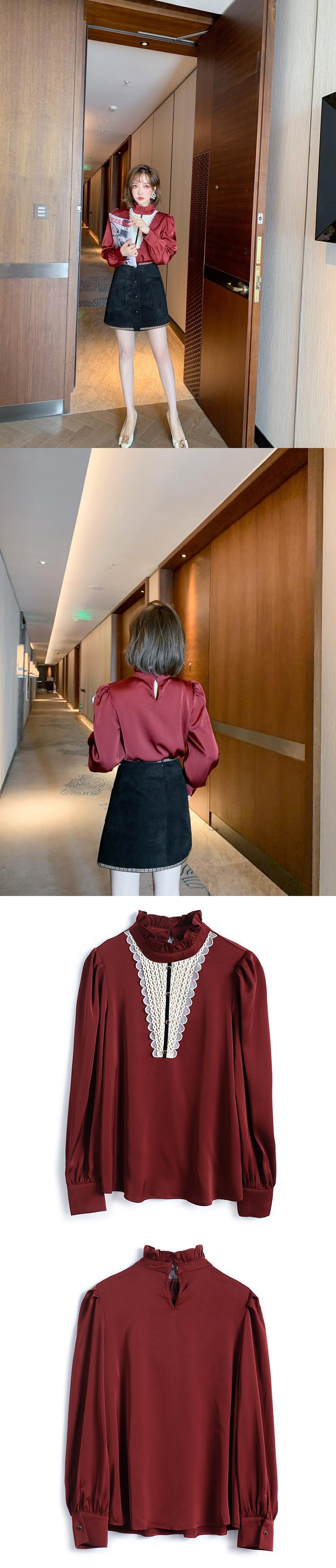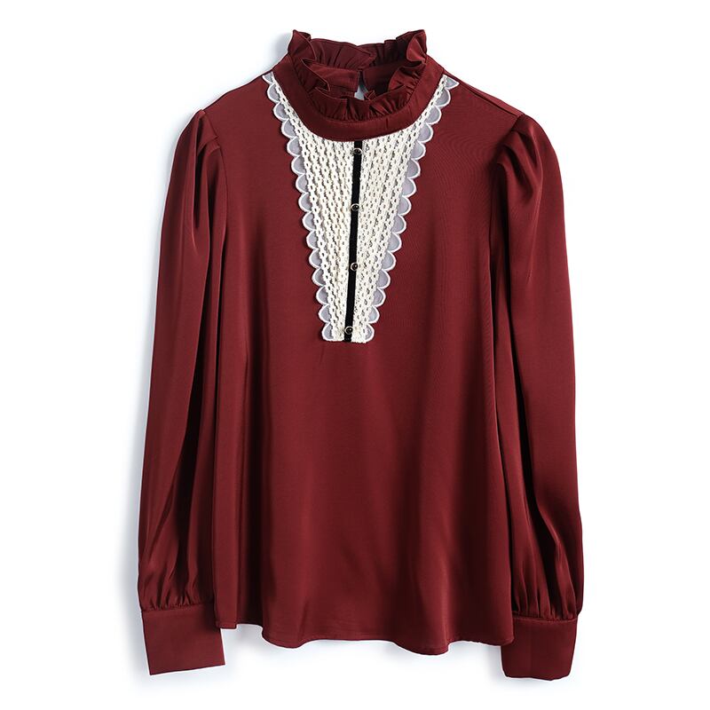 スタンドカラーカラーレースシャツ トップス スプリング 春物 ステッチ MIUCO25324199772