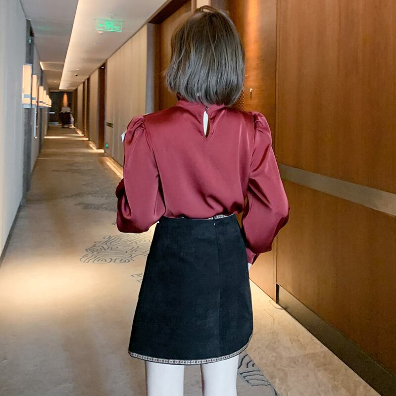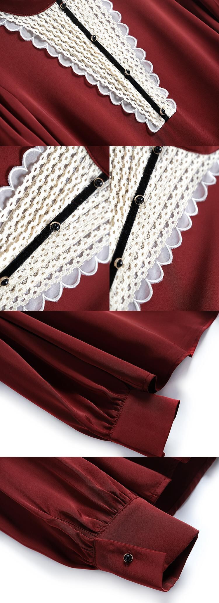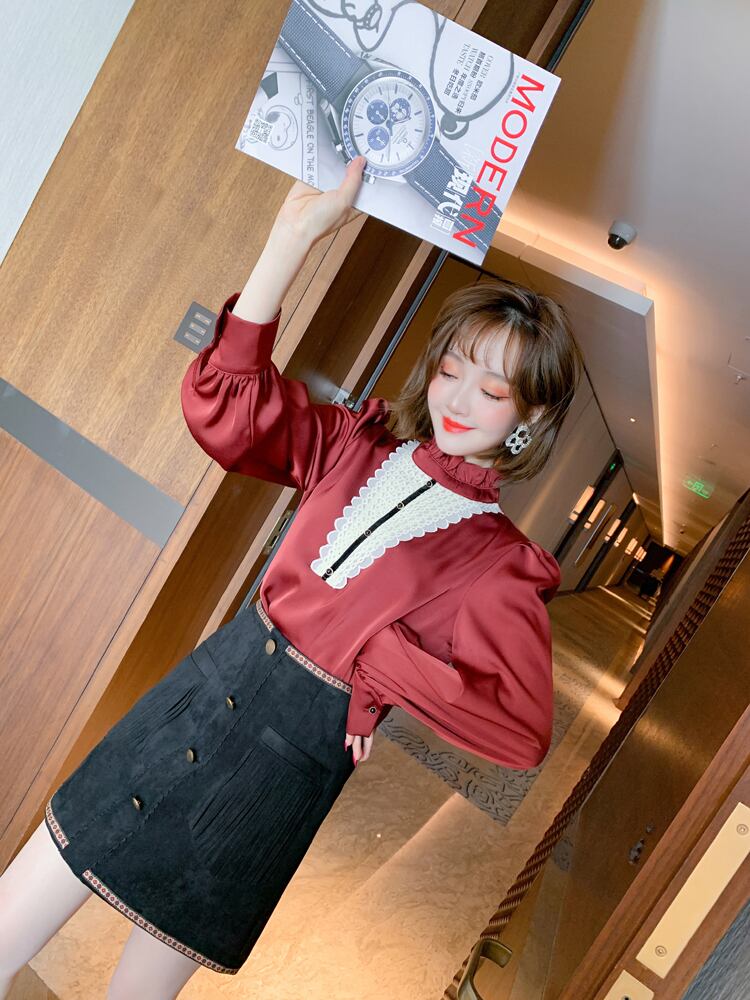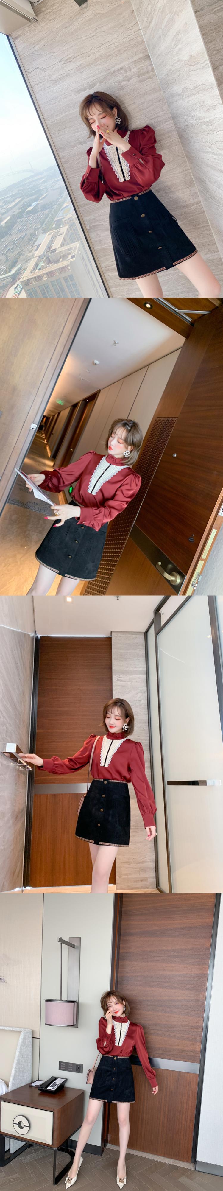 スタンドカラーカラーレースシャツ トップス スプリング 春物 ステッチ MIUCO25324199772