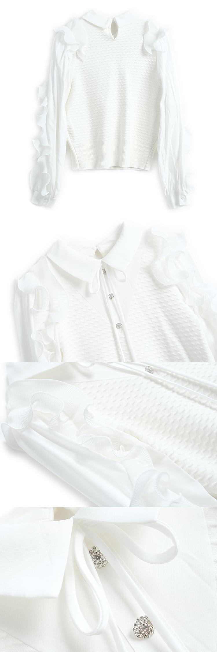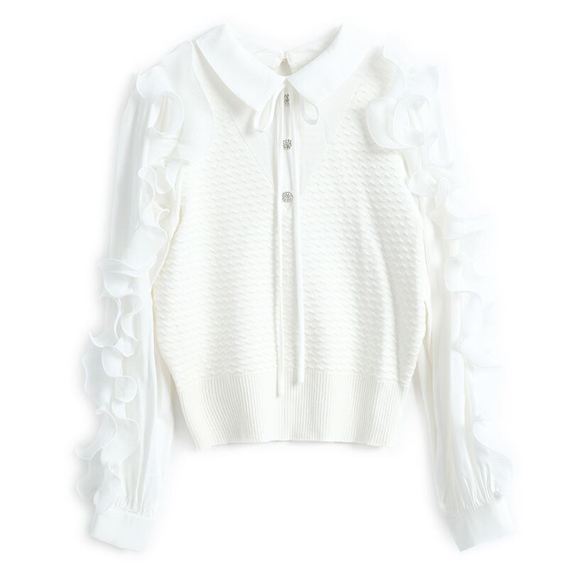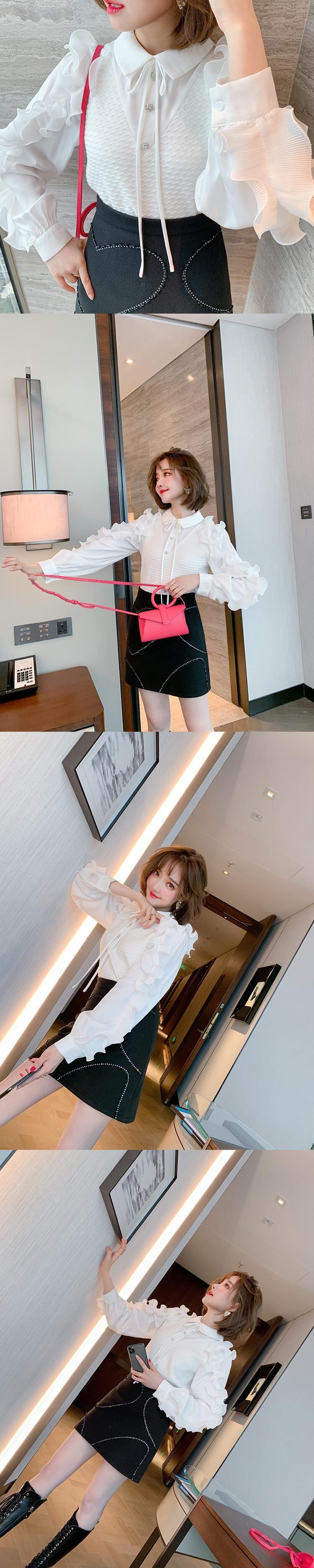 リボンレースブレストシャツ スプリング 春物 ステッチ MIUCO21367588001