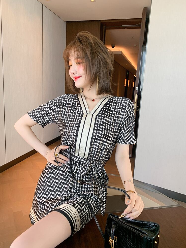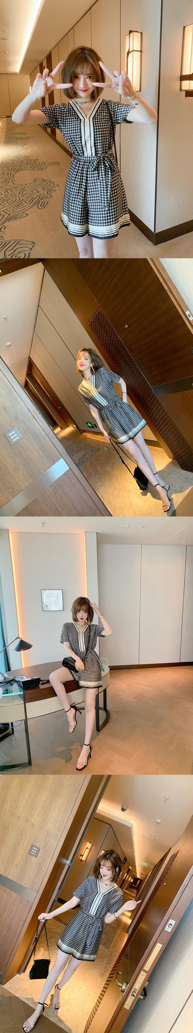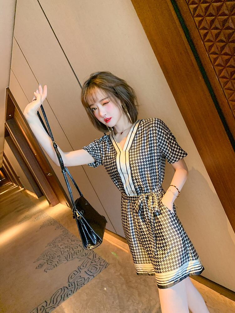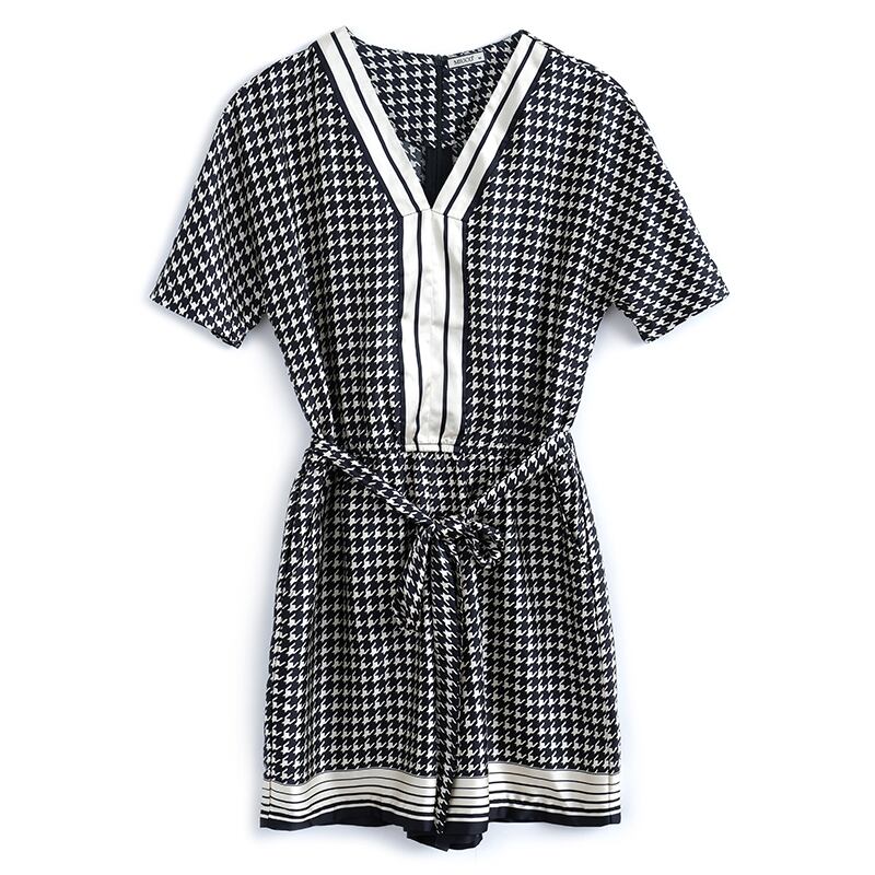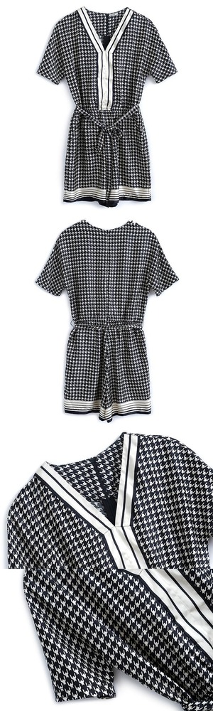カラーVネックウェストジャンプスーツ オールインワン サマー 夏物 MIUCO79673183321