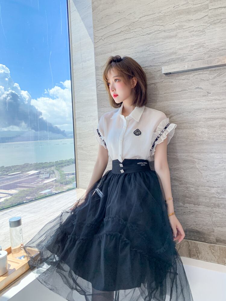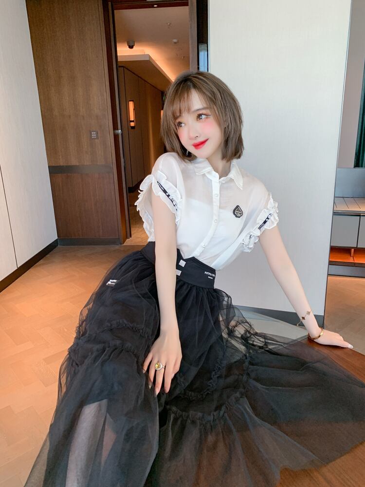 薄手メッシュサマー ハイウェスト 夏物 スカート ステッチ MIUCO47567767823