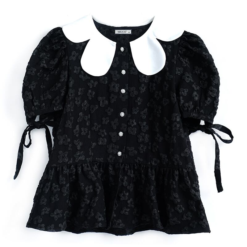 カラーレースジャカードスリーブトップス ステッチ MIUCO21576599814