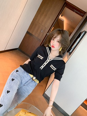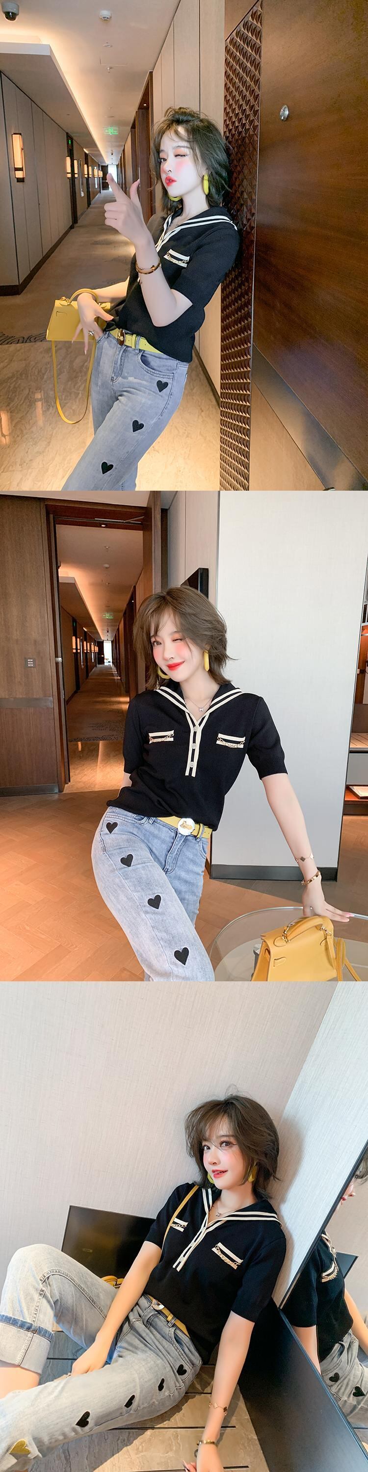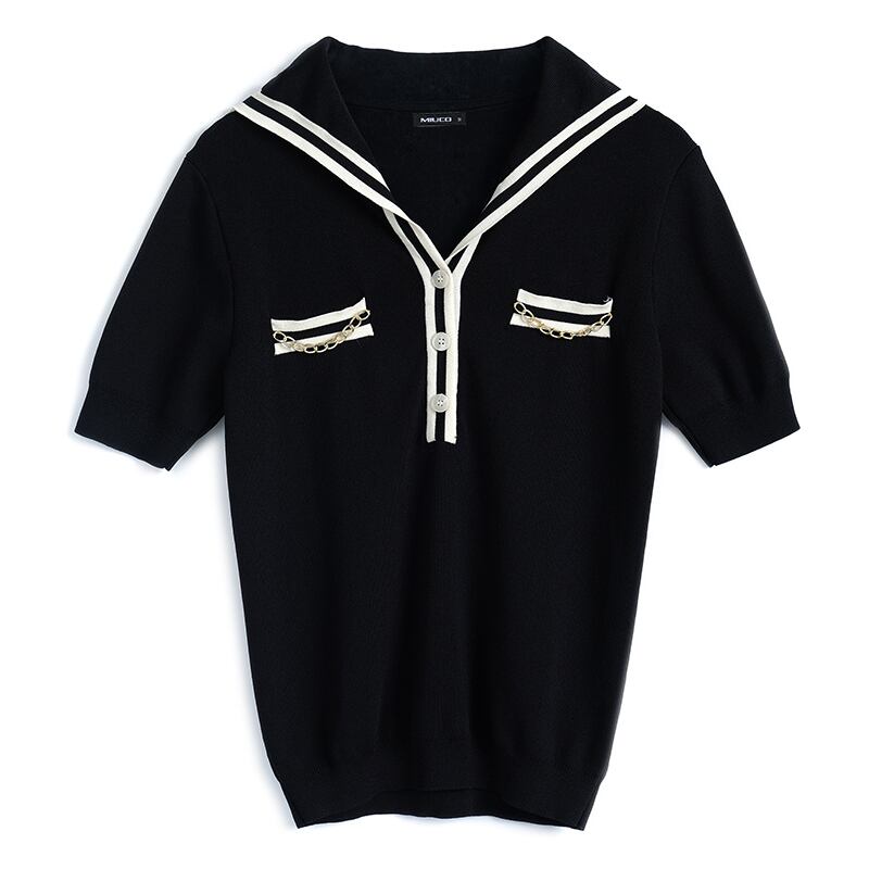 ボタンカラーストライプフィットニットTシャツ MIUCO74259123271