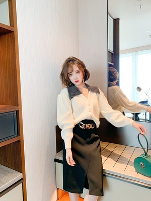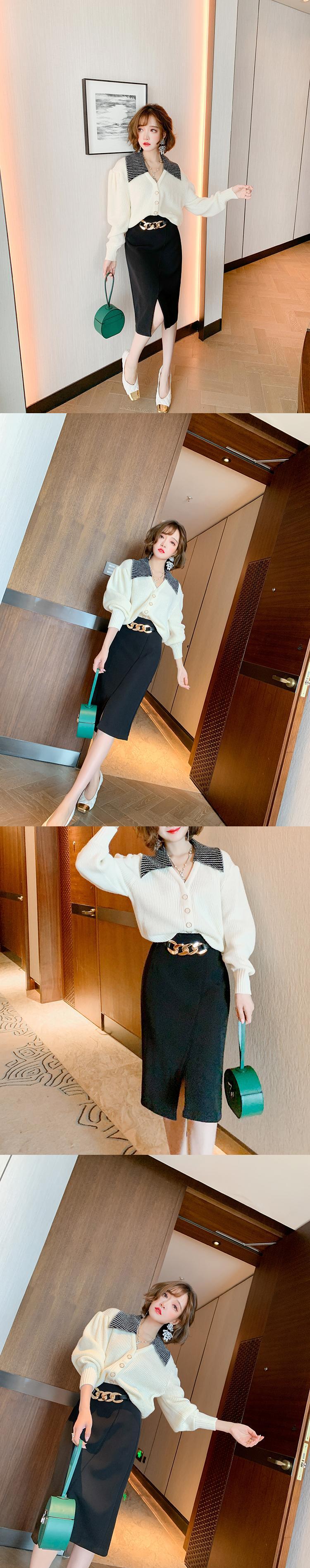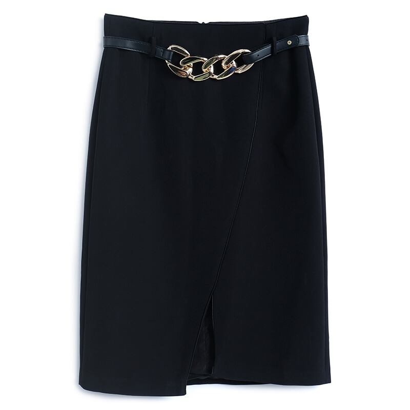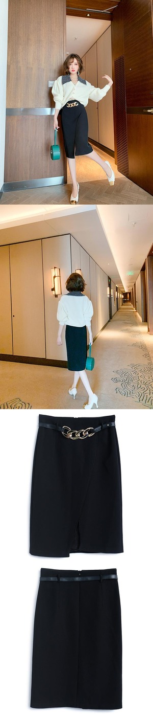 ハイウェストウェストメタルチェーン スリムスカート オータムウィンター 秋物 冬物 MIUCO95163493291