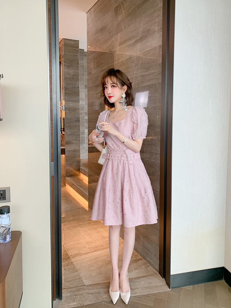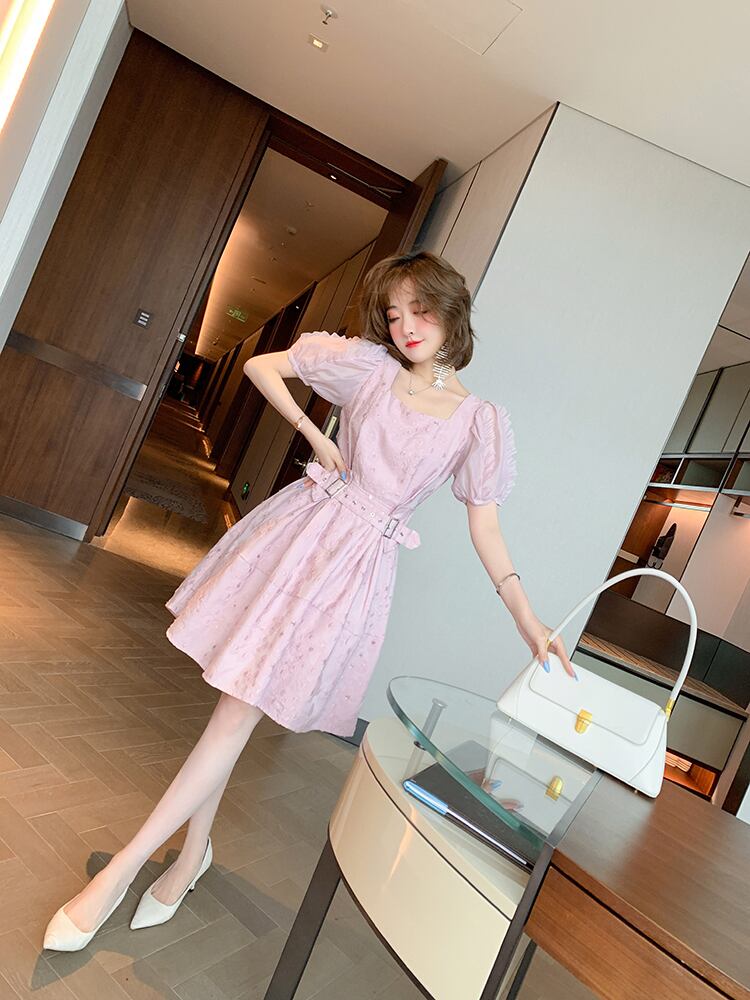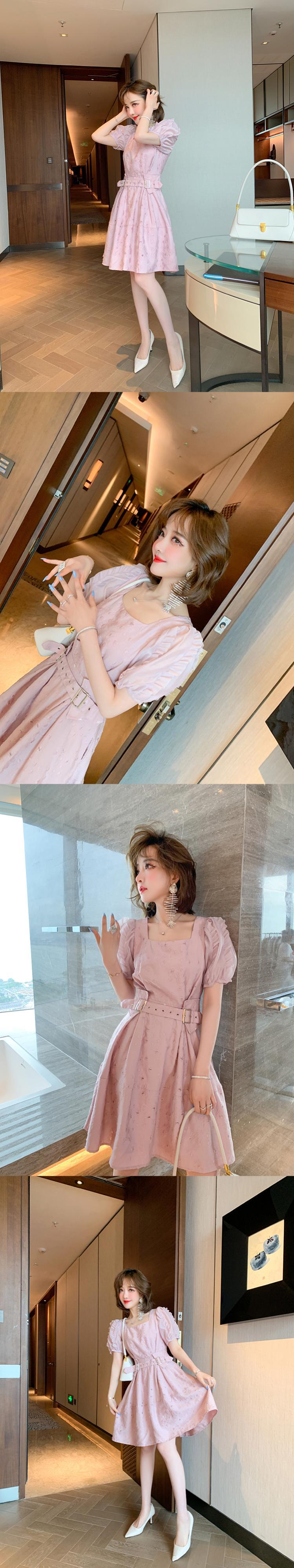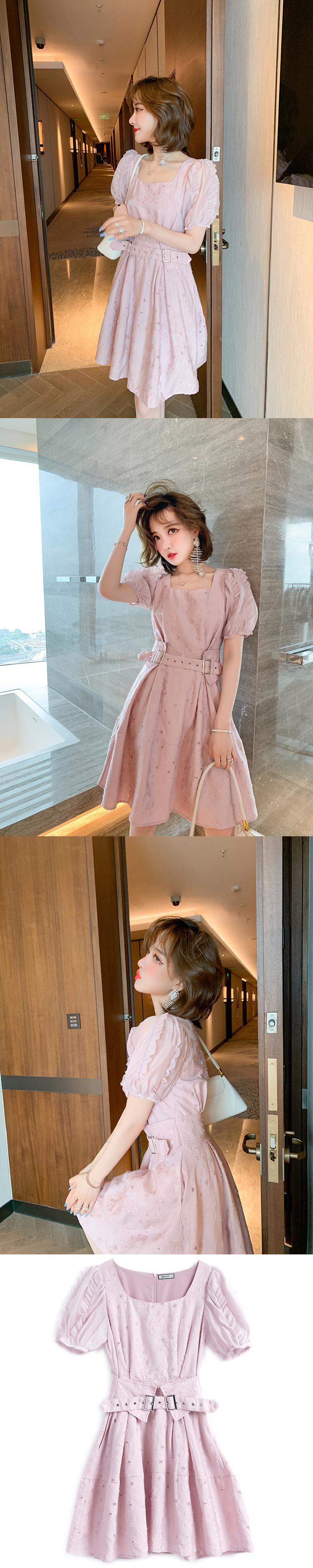 スリーブジャカードウェストドレス サマースタイル 夏物 スクウェア MIUCO12065183168