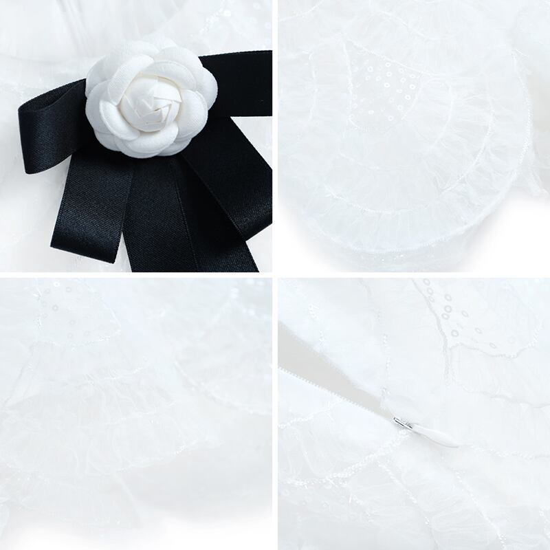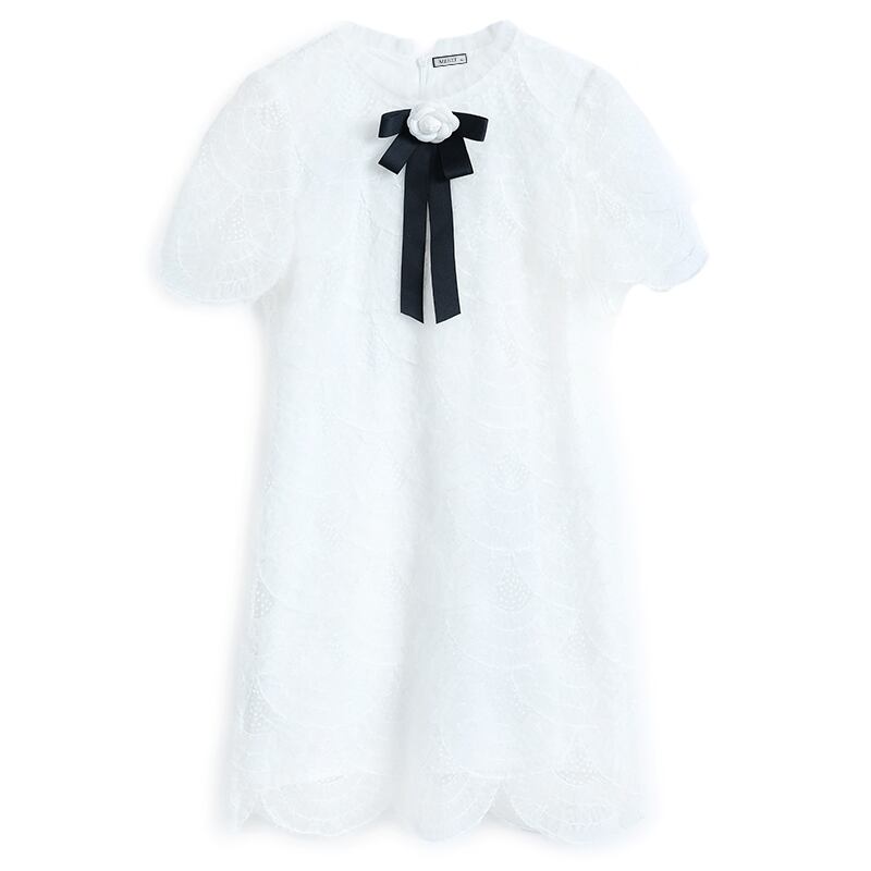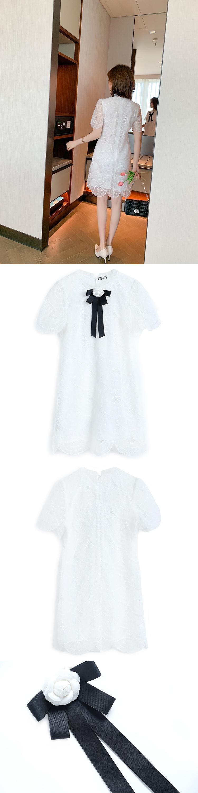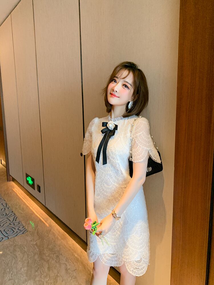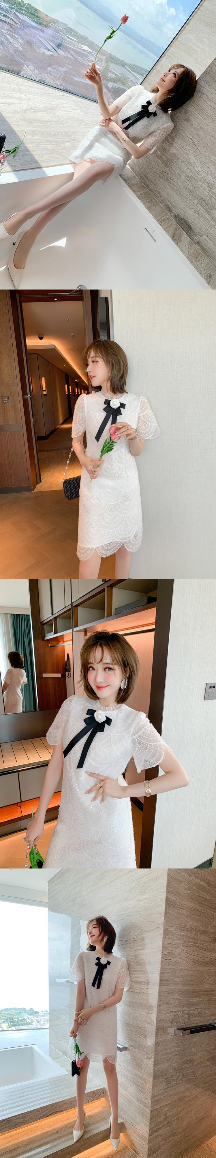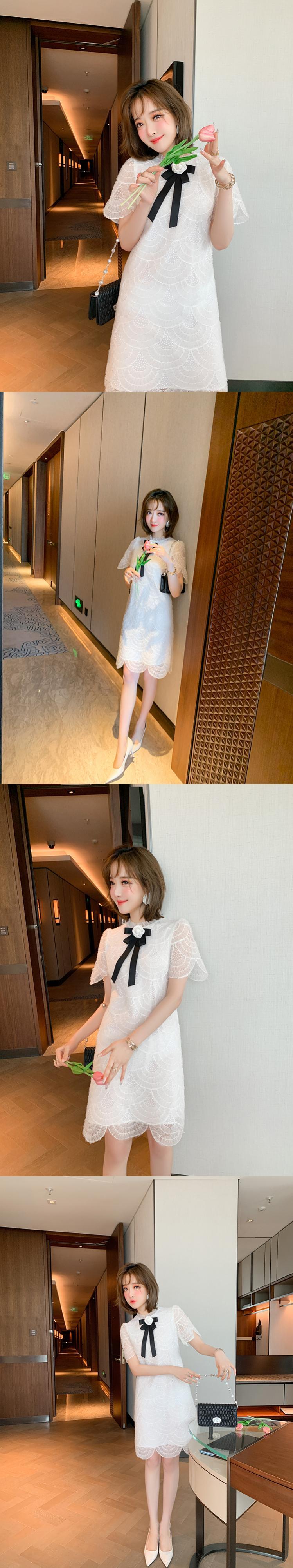 プリーツカラーリボンレースドレス サマー 夏物 MIUCO75701261071