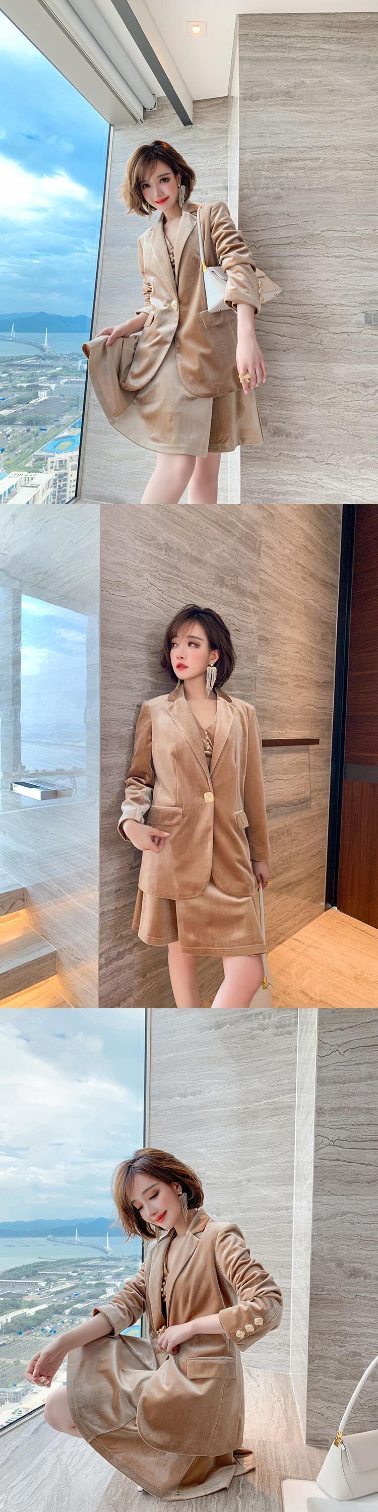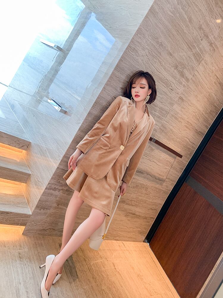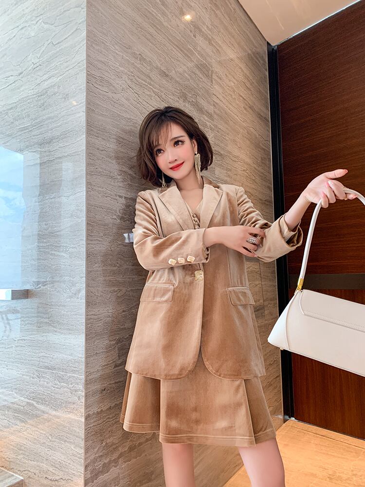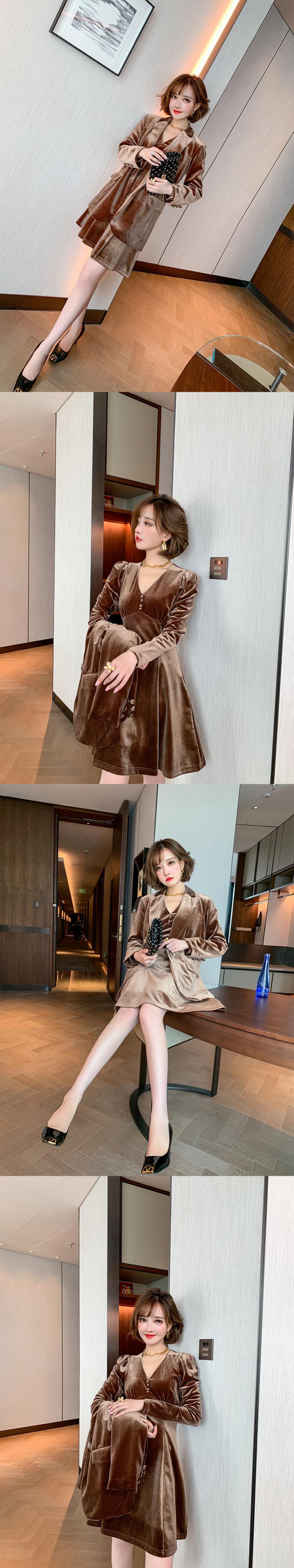 ボタンベルベットジャケット ハイウェストウェストドレス オータム 秋物 MIUCO15976407373