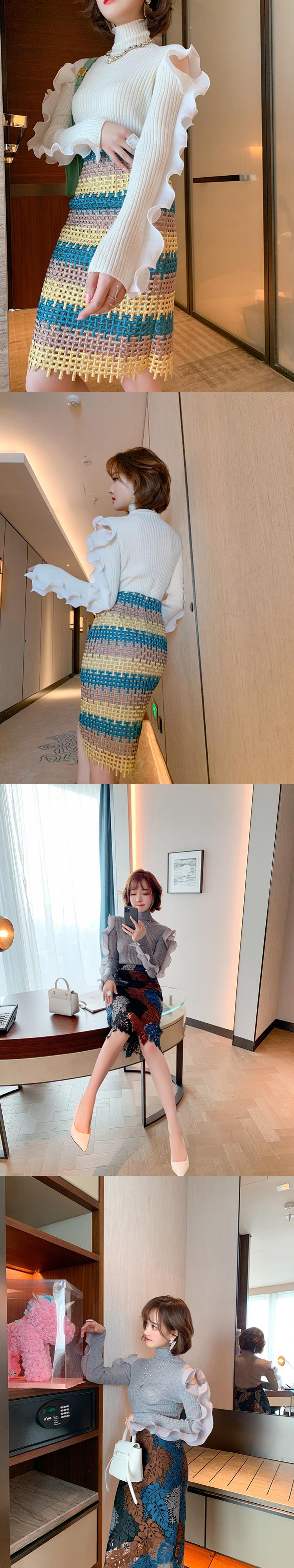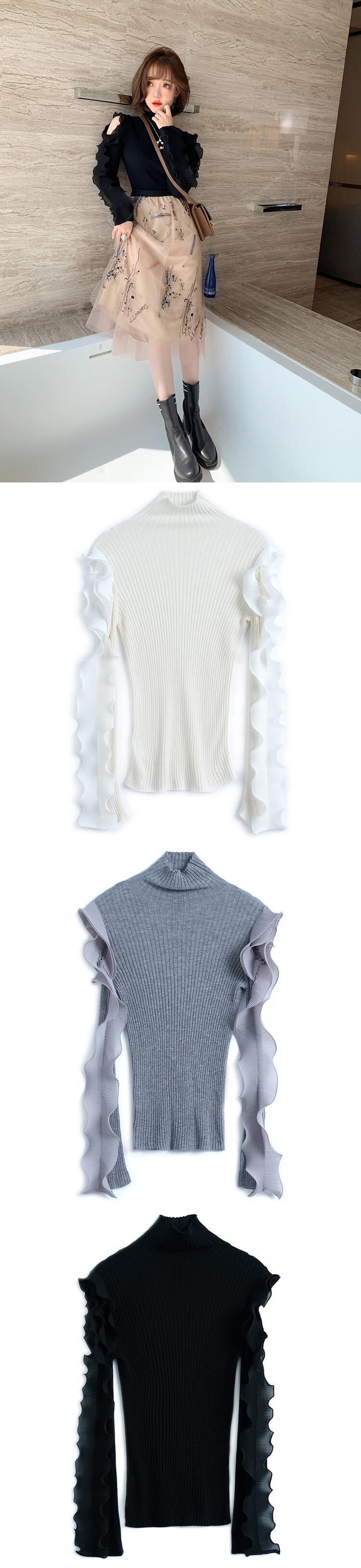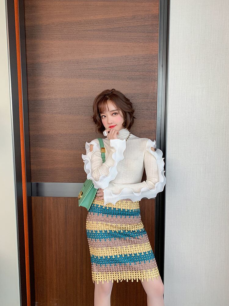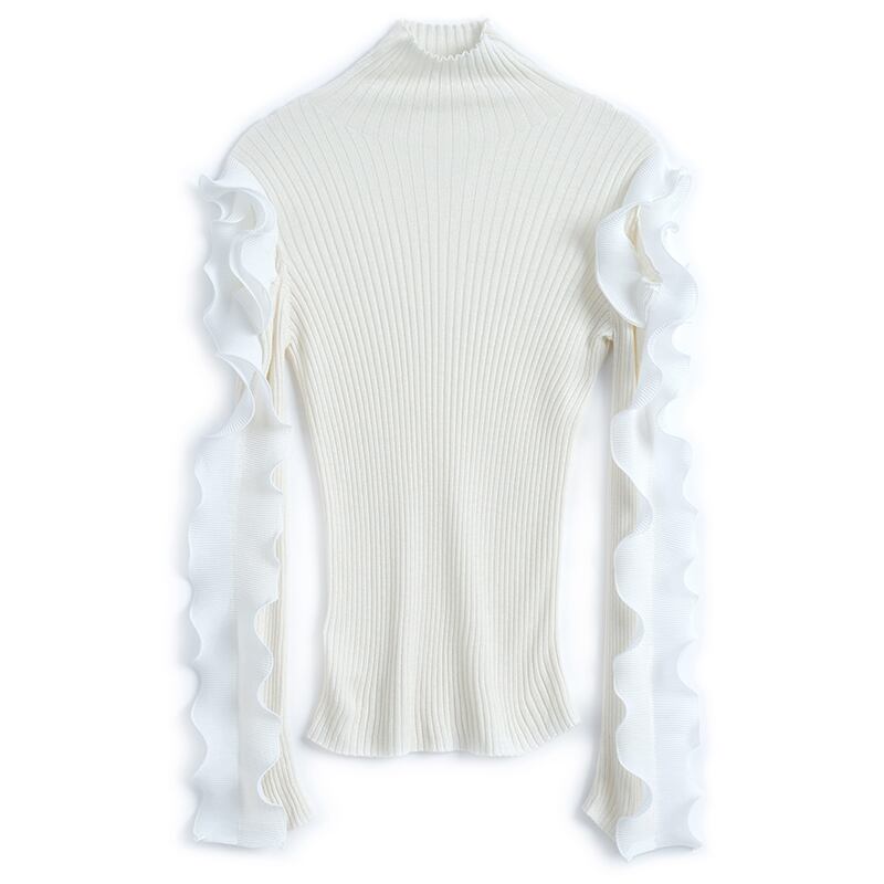 プリーツニットセーター オータムウィンター 秋物 冬物 オフショルダー MIUCO2086962189