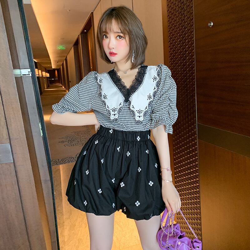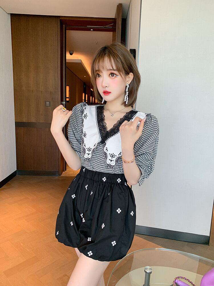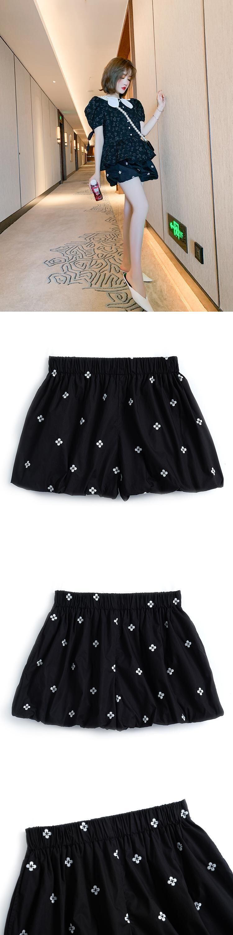 ストレッチウェストショーツ サマー レッド 刺繍 エラスティック 伸縮 大人ガーリー スウィート キュート カジュアル 夏物 ブルマー MIUCO94024506878