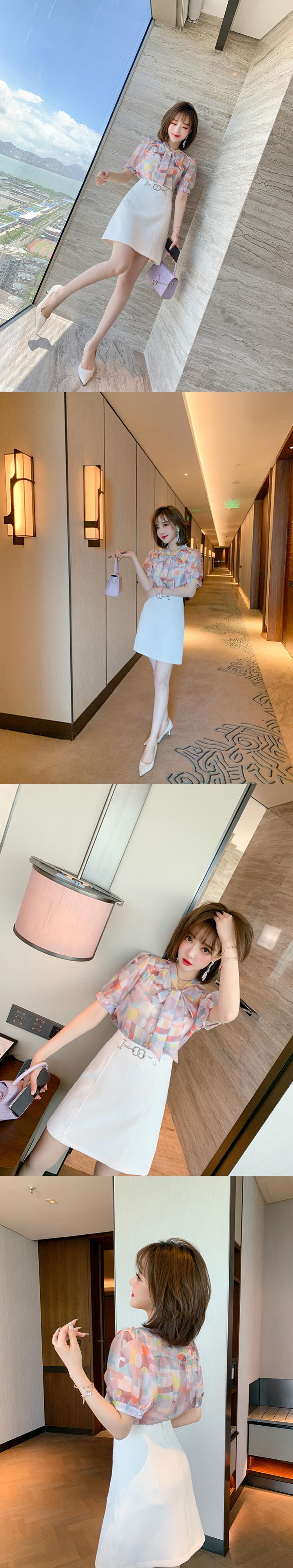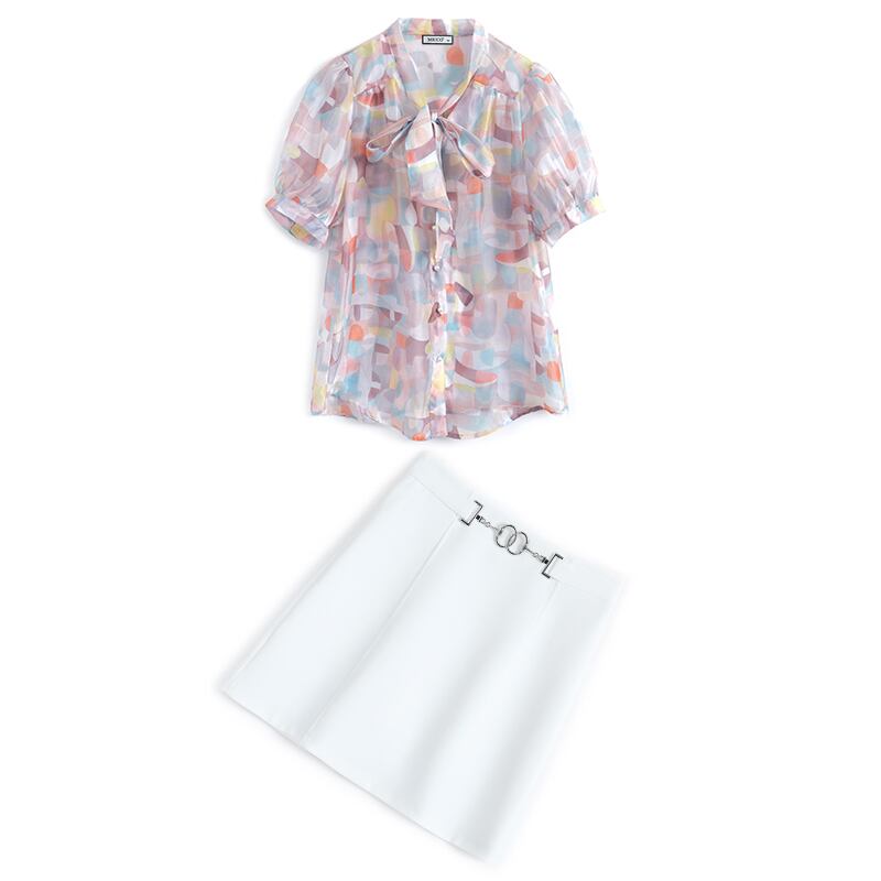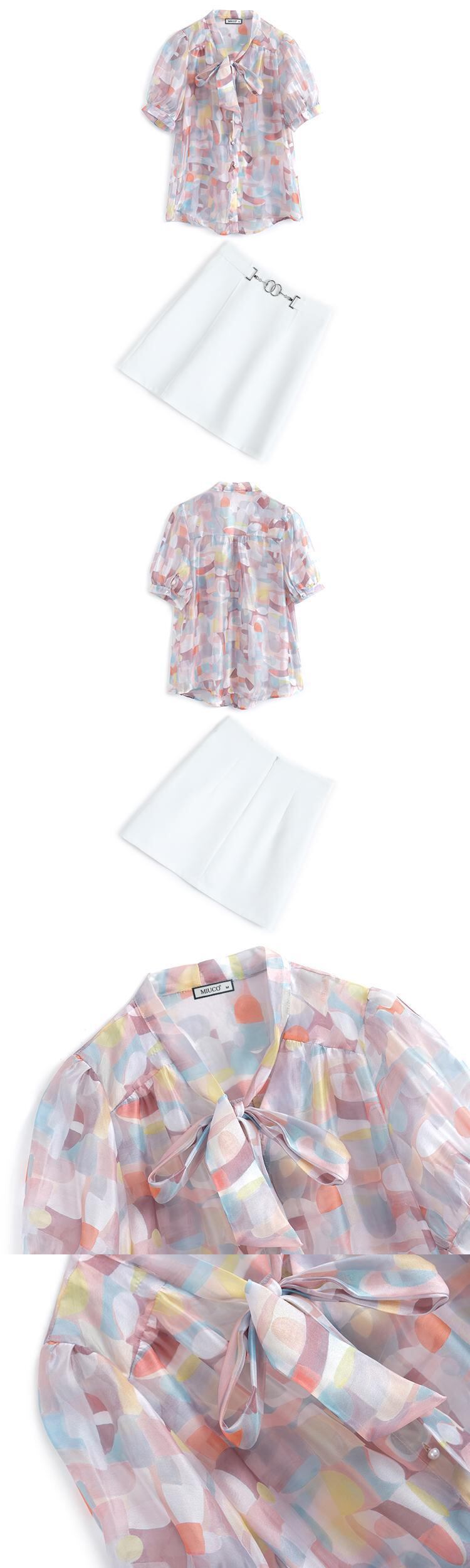 リボンプリントシャツ 薄手Aラインスカート サマースタイル 夏物 MIUCO4228032763