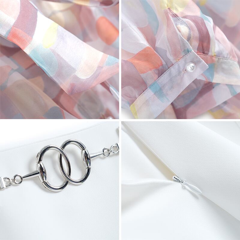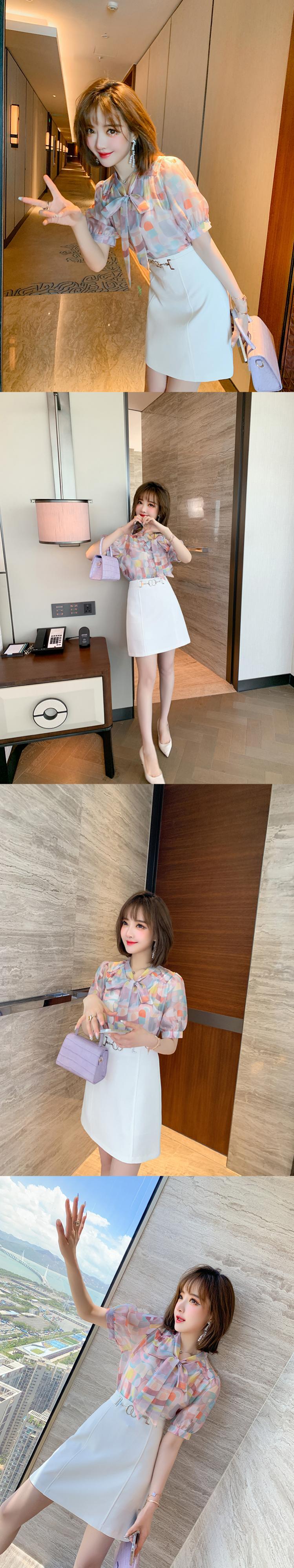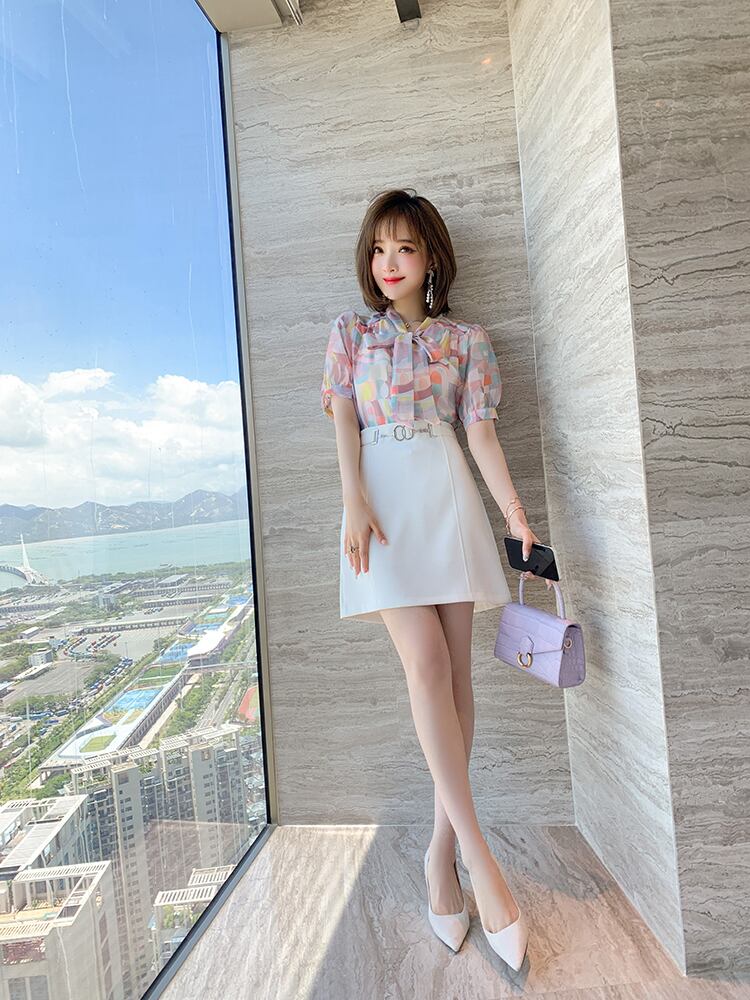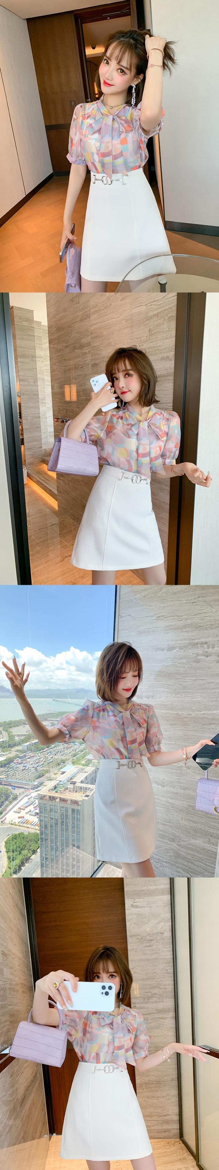 リボンプリントシャツ 薄手Aラインスカート サマースタイル 夏物 MIUCO4228032763