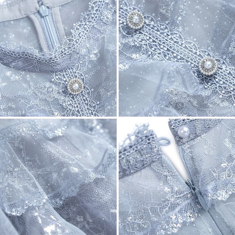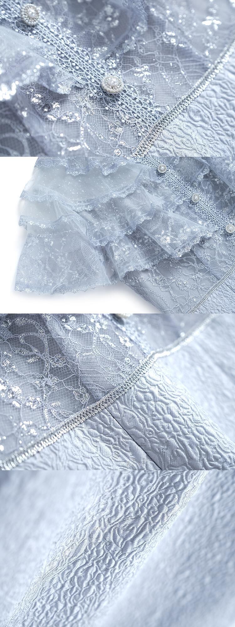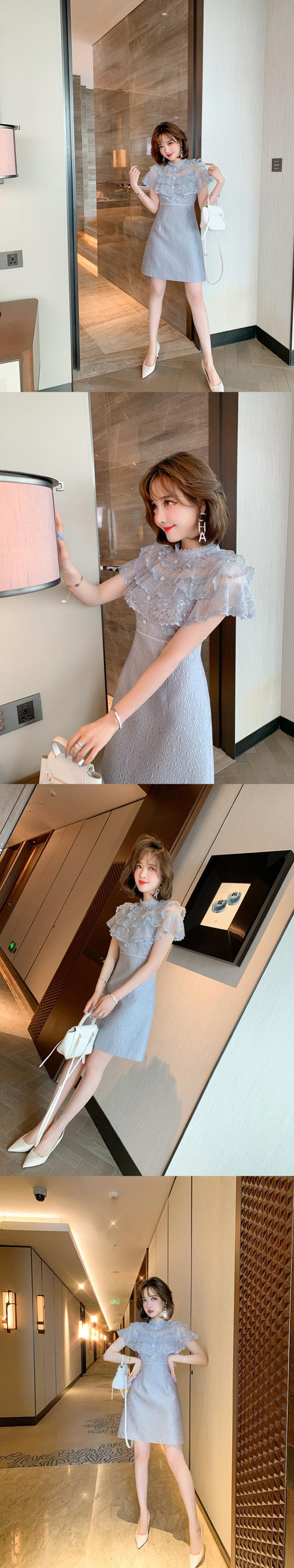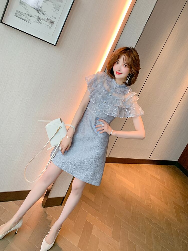 カラーメッシュウェスト薄手Aラインプリーツジャカードドレス MIUCO99841716567