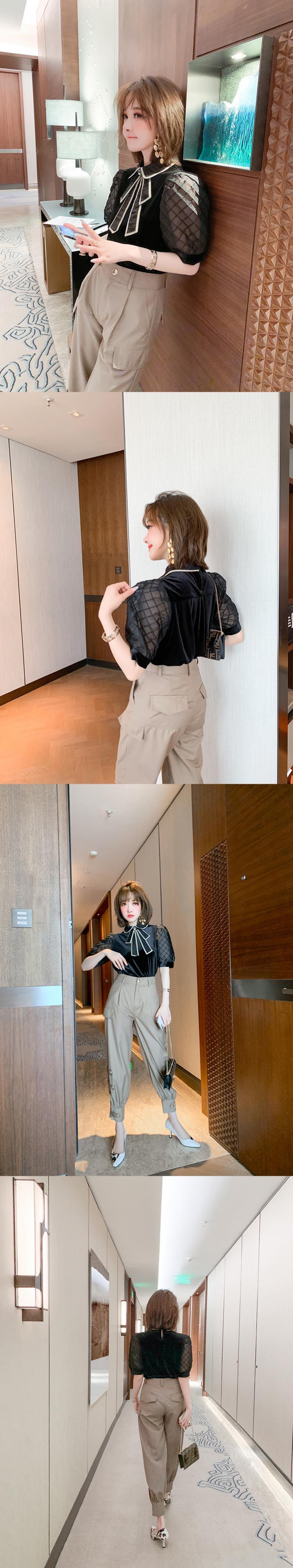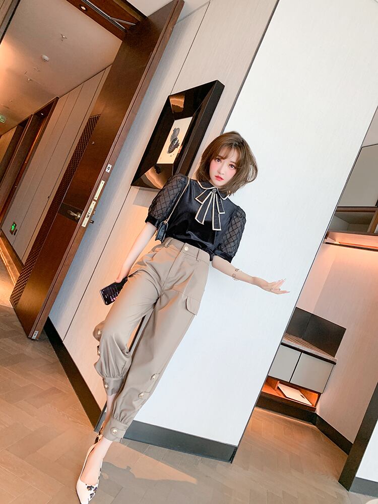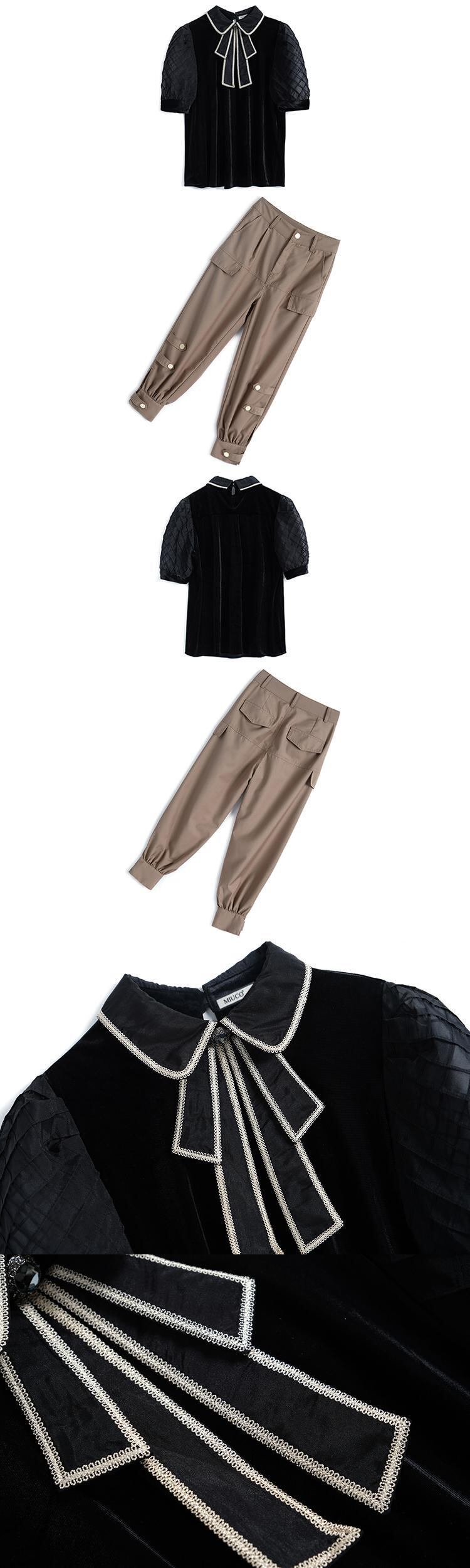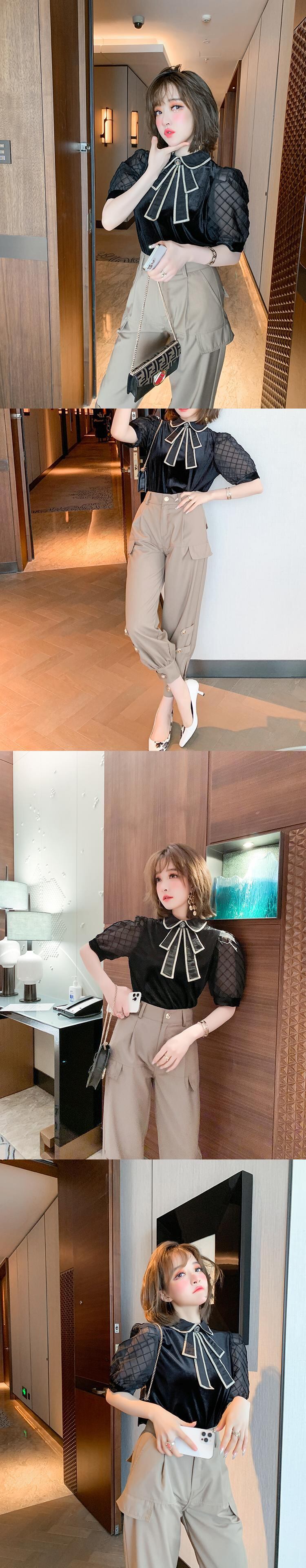 スタンダードカラーリボンシャツ 薄手オーバーオール サマースタイル レトロ 夏物 MIUCO40723536980