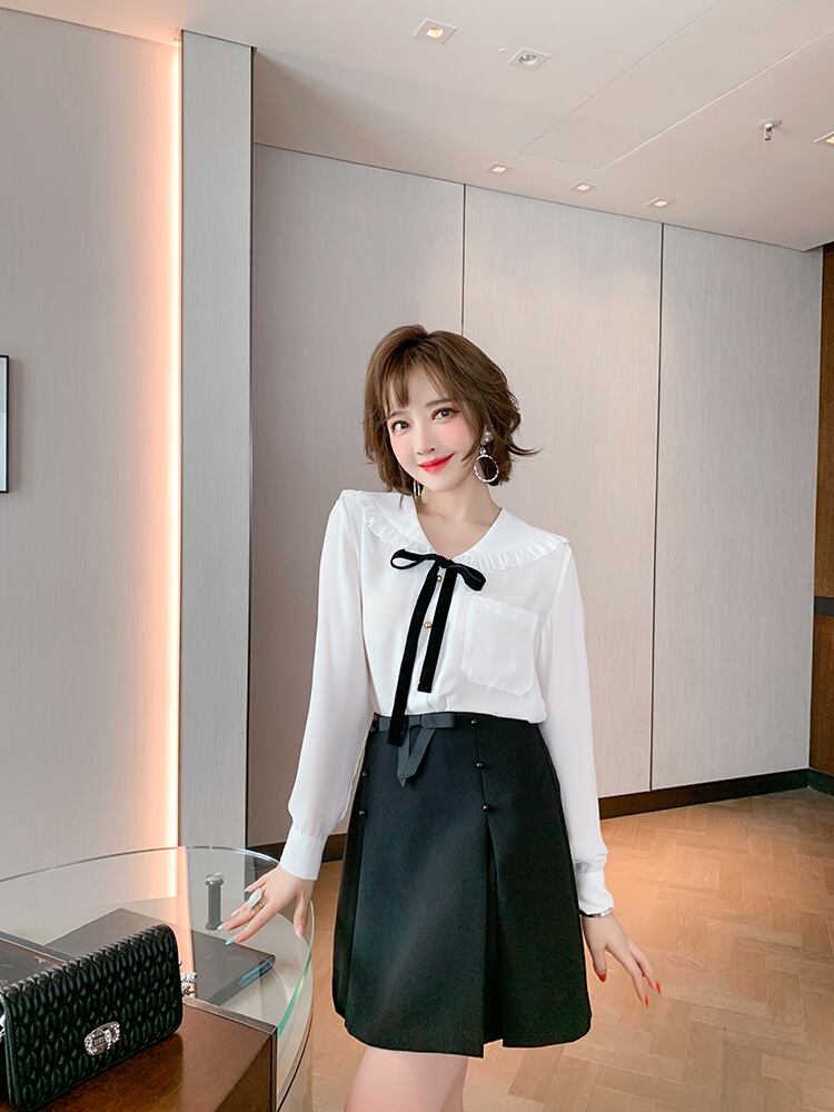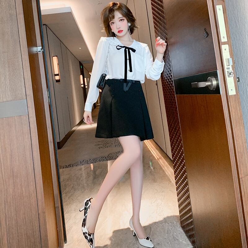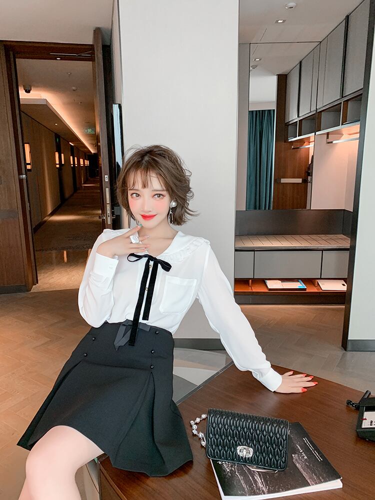 リボンハイウェストウェストボタンプリーツ薄手スカート スプリング 春物 MIUCO45639532805