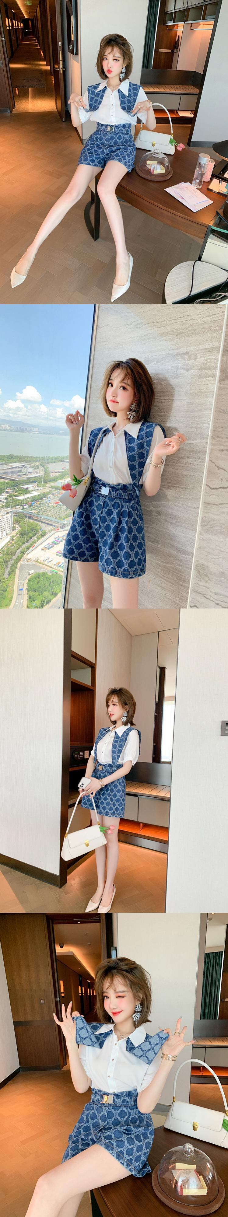 ジャカードシャツ ベルト ウェストAラインショーツ オータム 秋物 ハーネス ブルマー MIUCO47358176861