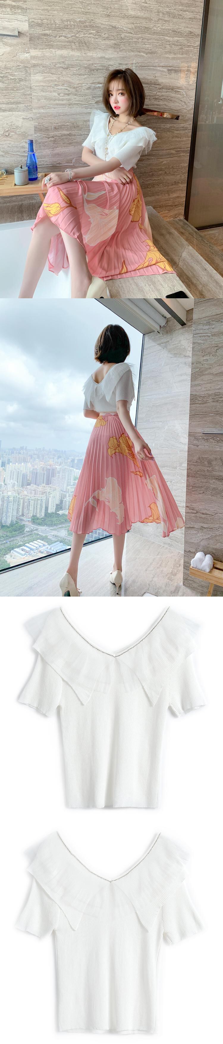 Vネックチェーン メッシュセーター トップス レディース ステッチ MIUCO20377813731