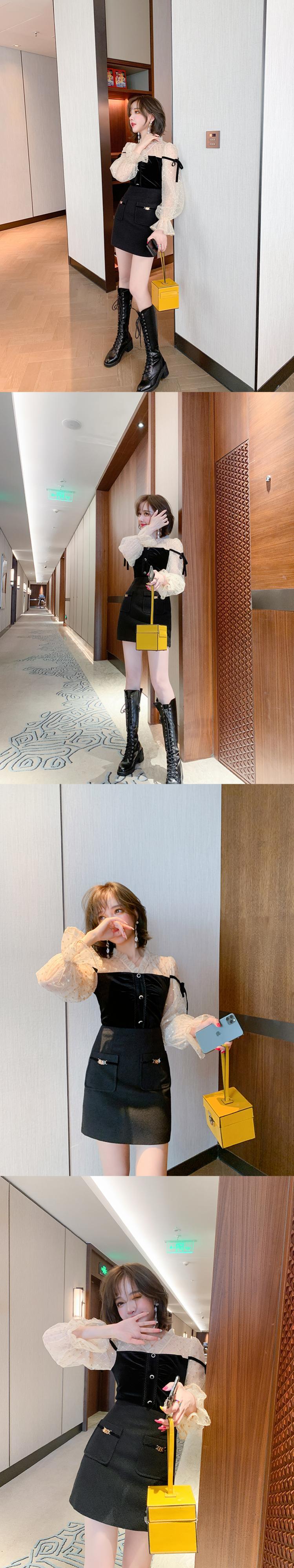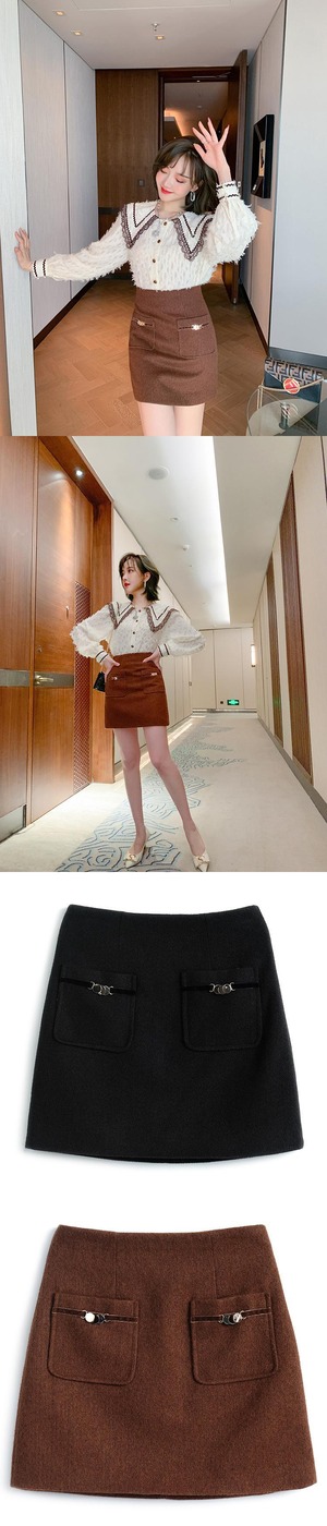 ハイウェストウェスト薄手Aラインスカート ウィンター 冬物 MIUCO67828478324