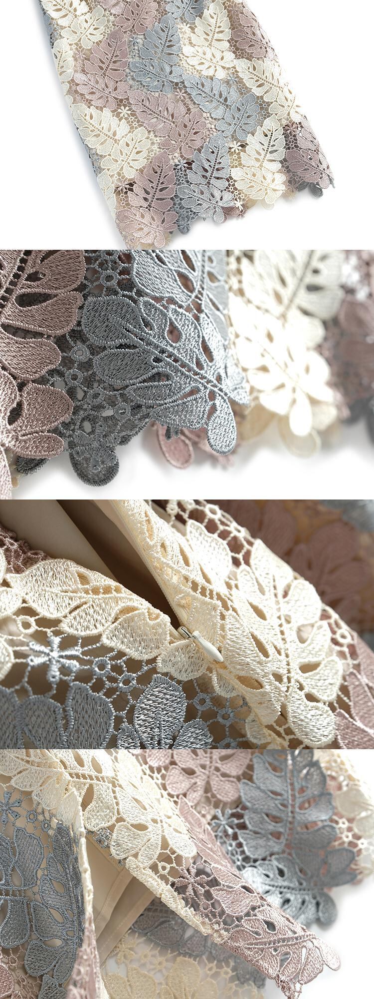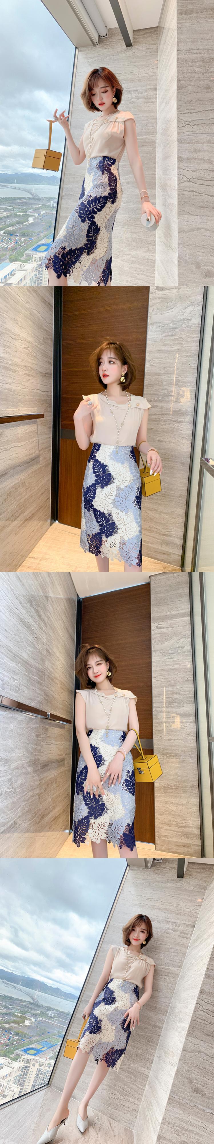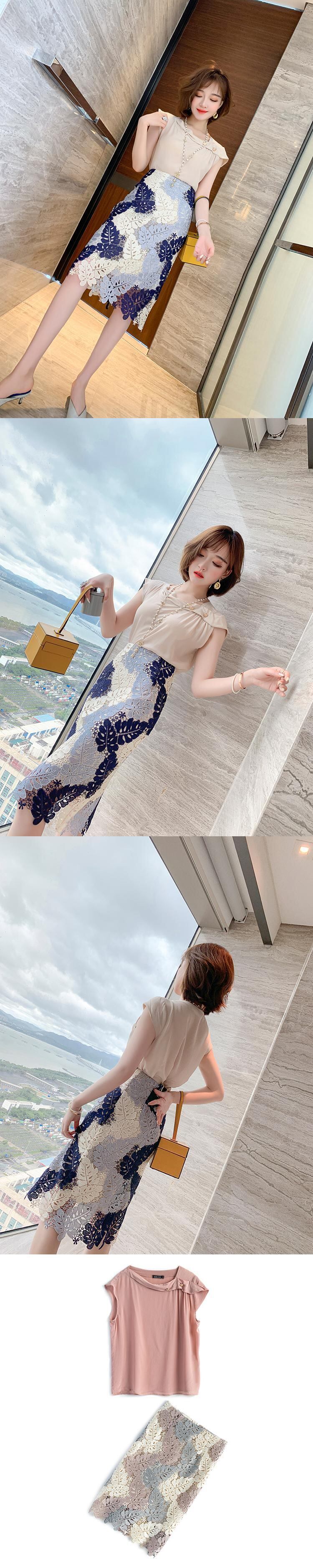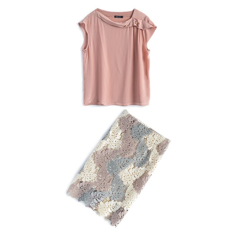 ボタンスリーブトップス レーススカート サマー レッド 刺繍 夏物 MIUCO8123460817