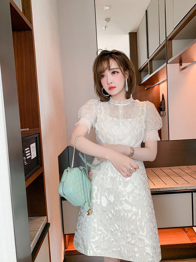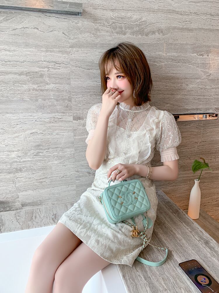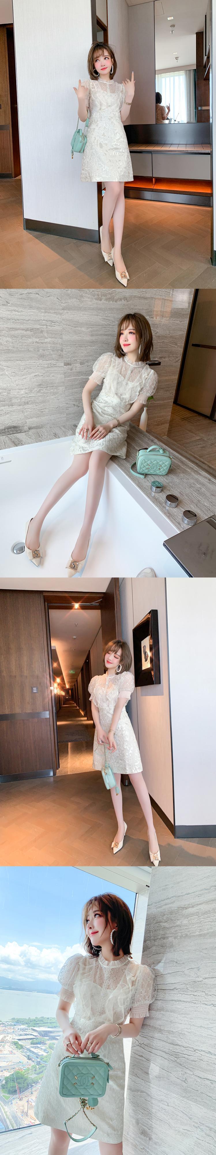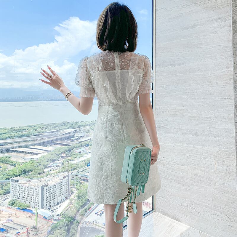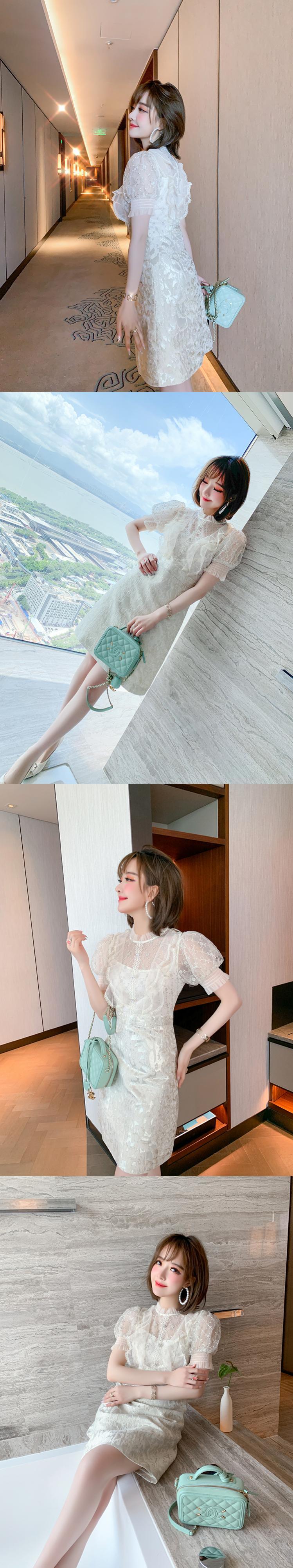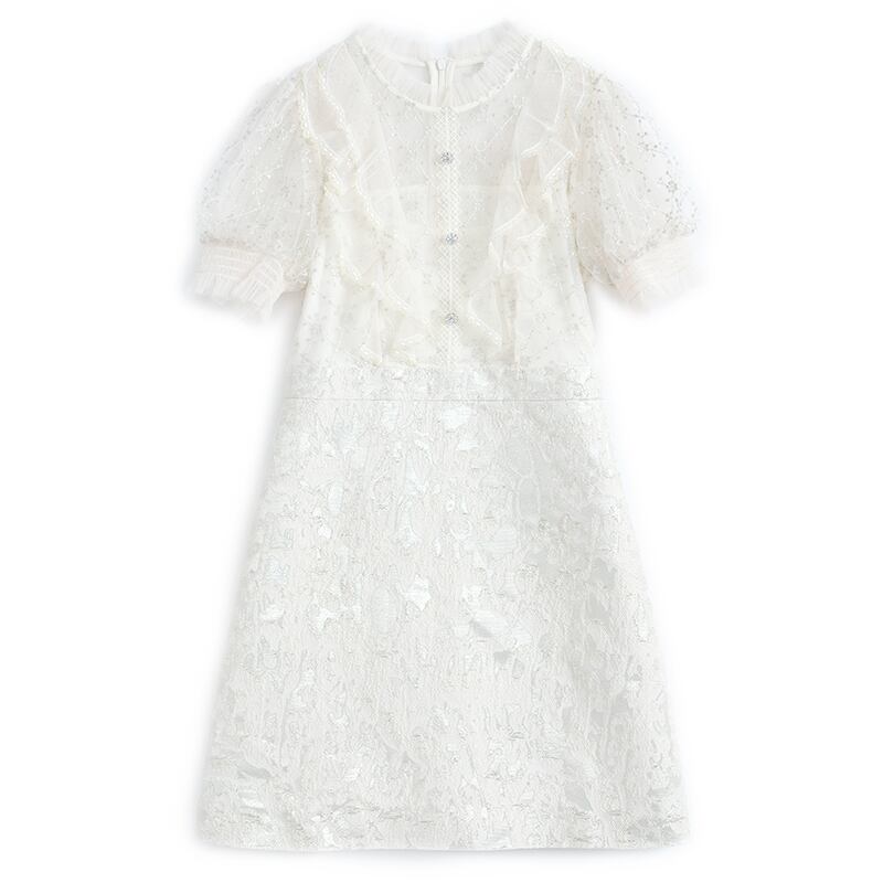 刺繍メッシュジャカードAラインスカート ドレス サマー 夏物 ステッチ MIUCO69524034310