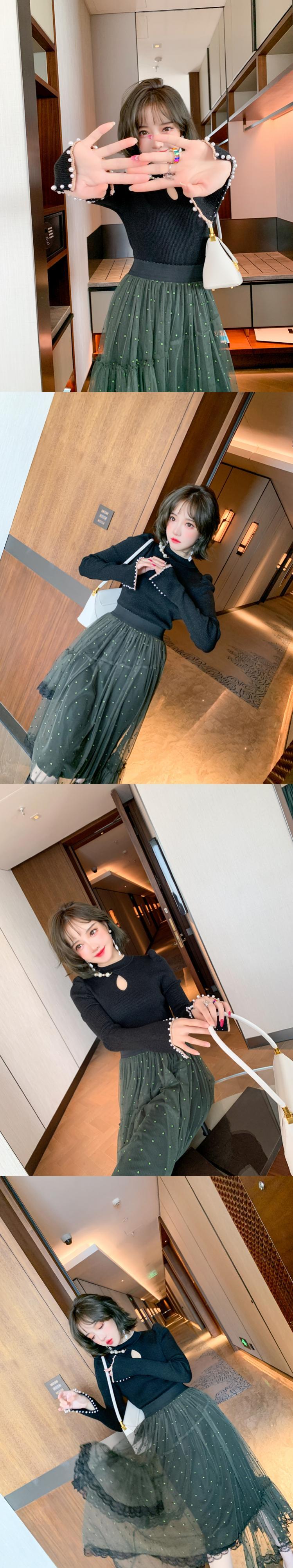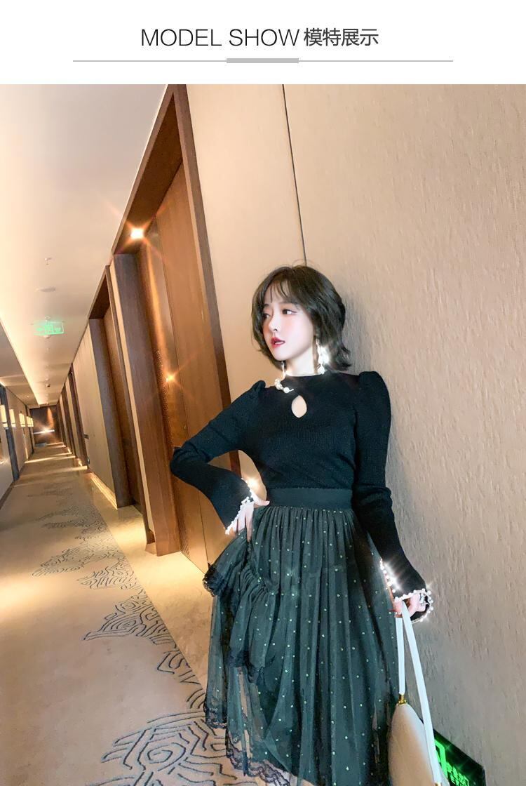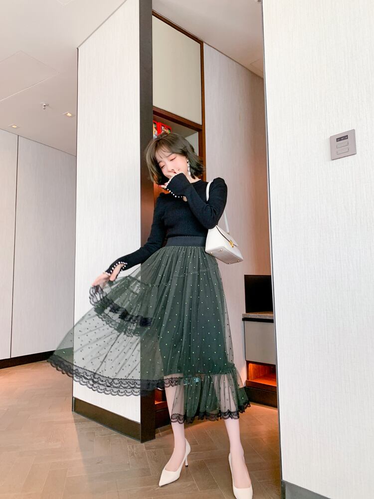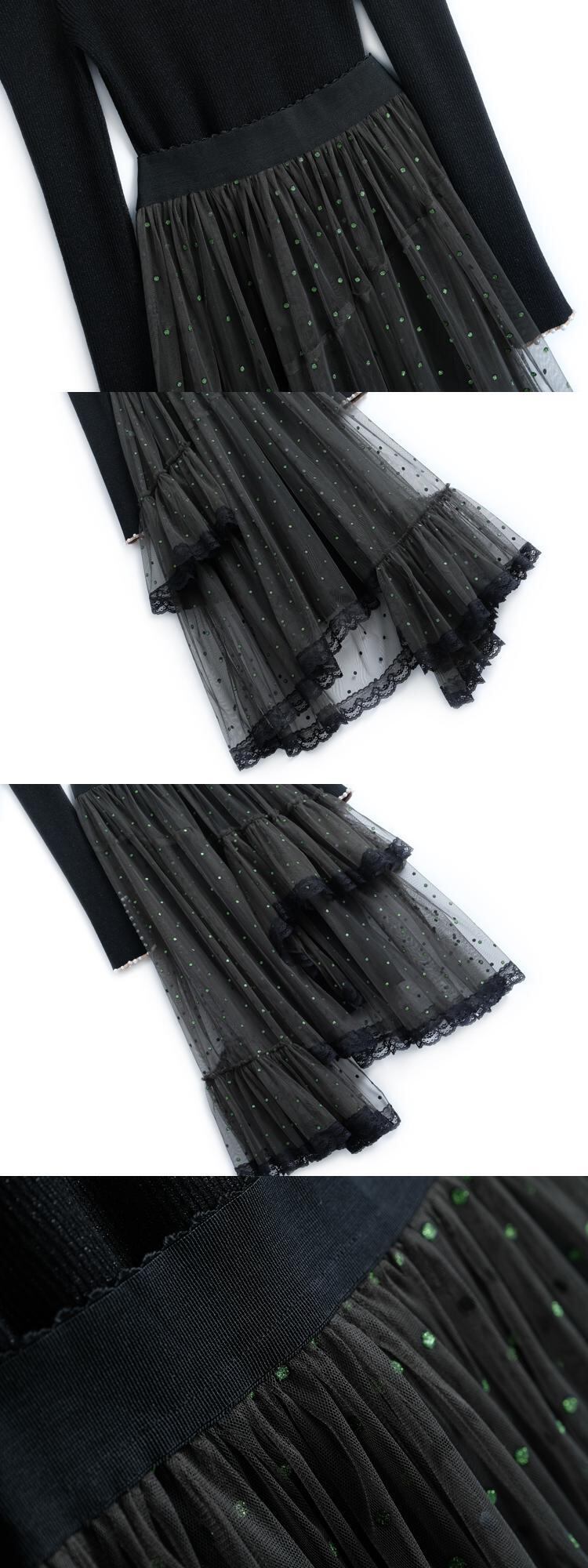 ニットドレス ウェストスリムメッシュスカート スプリング 春物 MIUCO55561205730