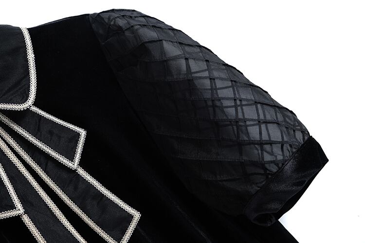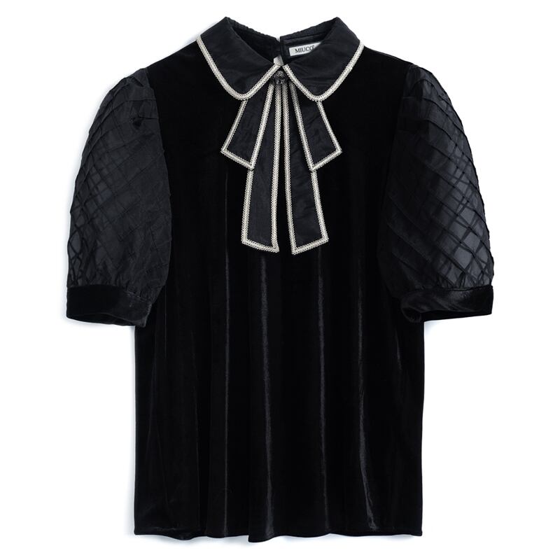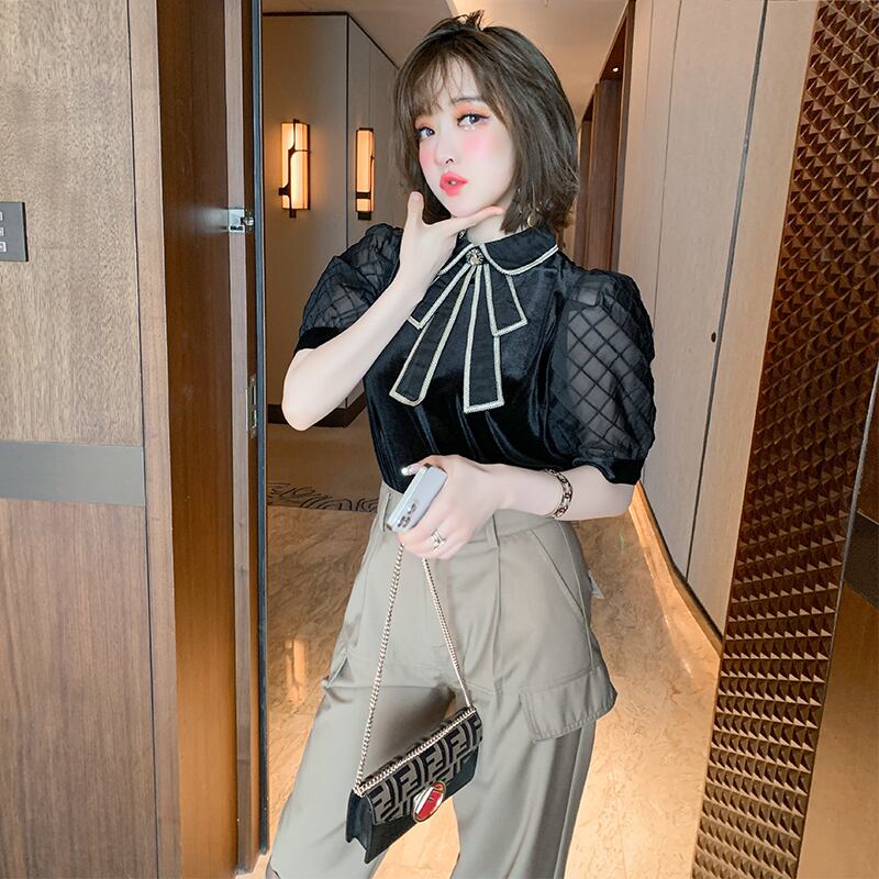スタンダードカラーリボンメッシュスリーブシャツ サマースタイル レトロ エレガント 夏物 MIUCO97478661211
