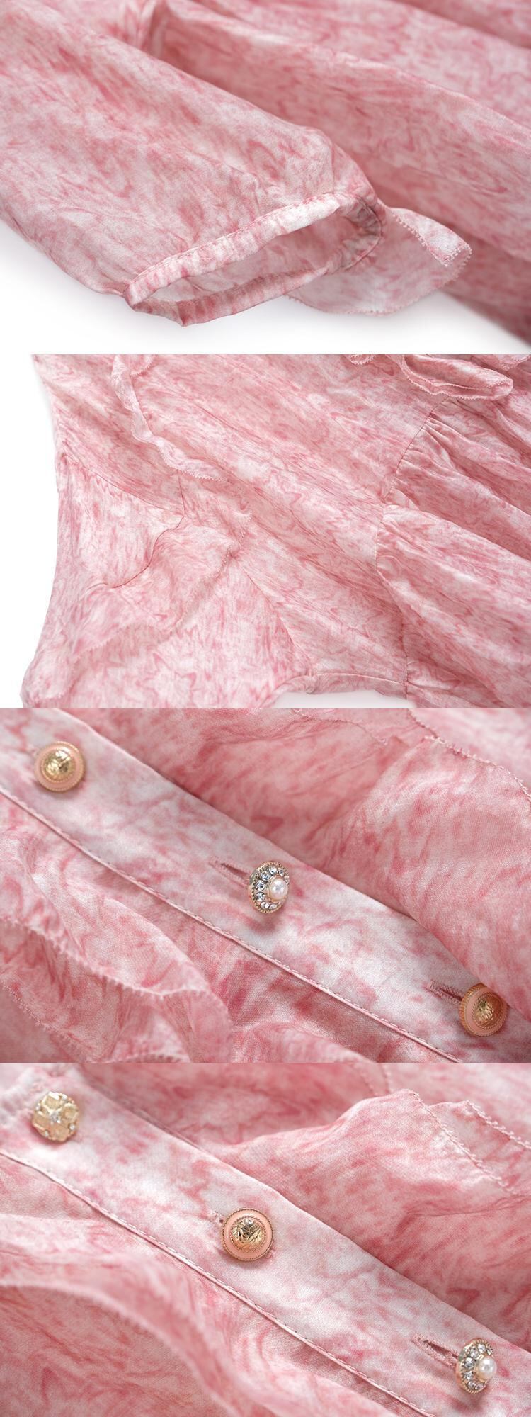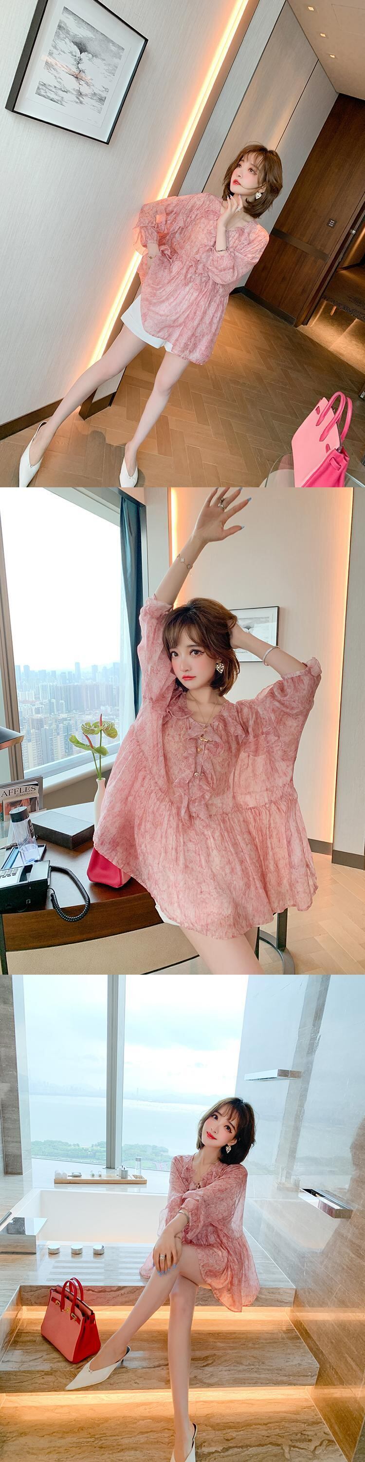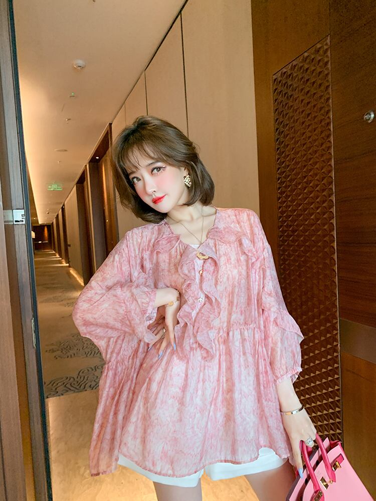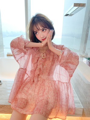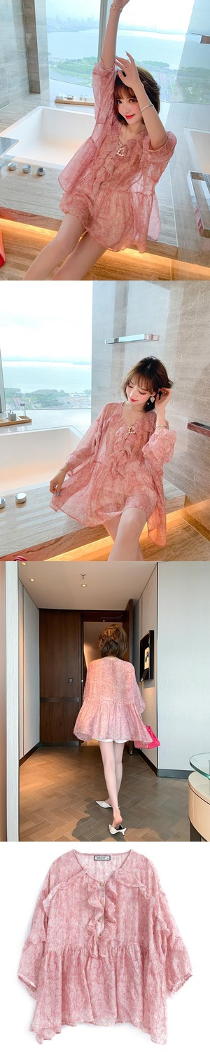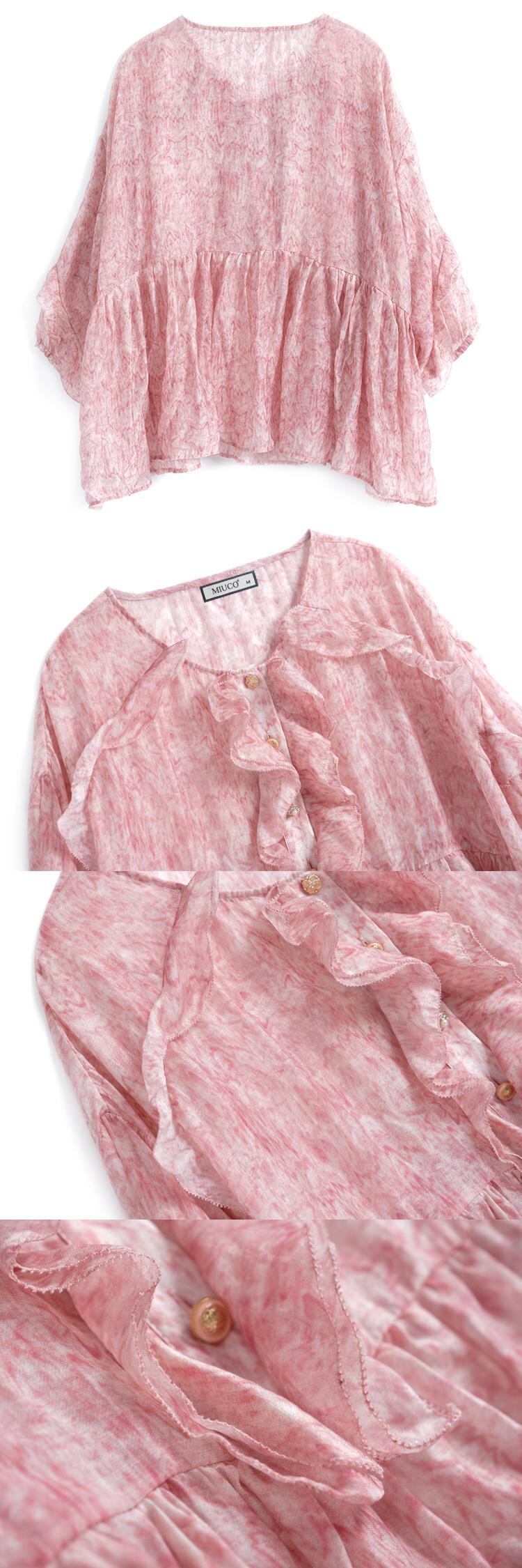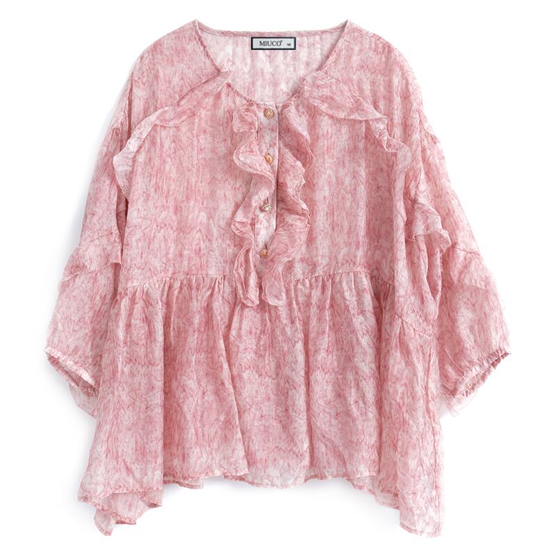 レースルーズ薄手Vネックプリントシャツ サマースタイル 夏物 ステッチ MIUCO27685151439