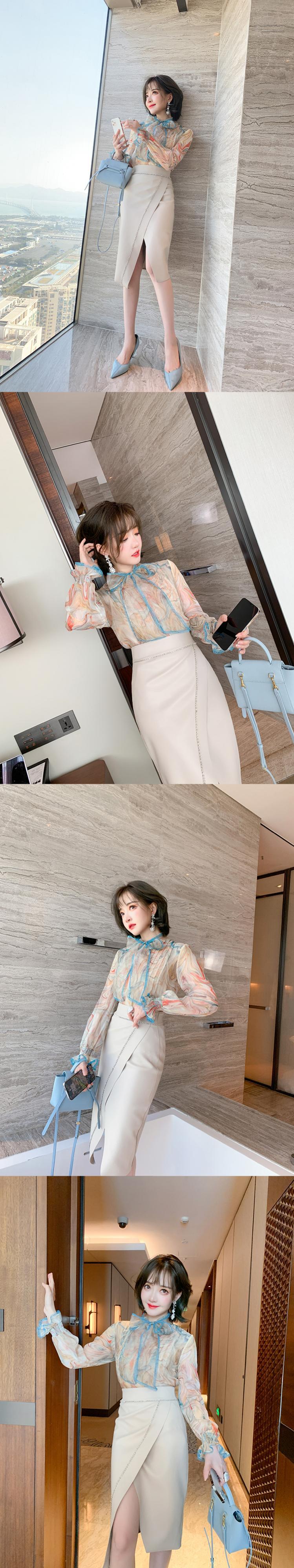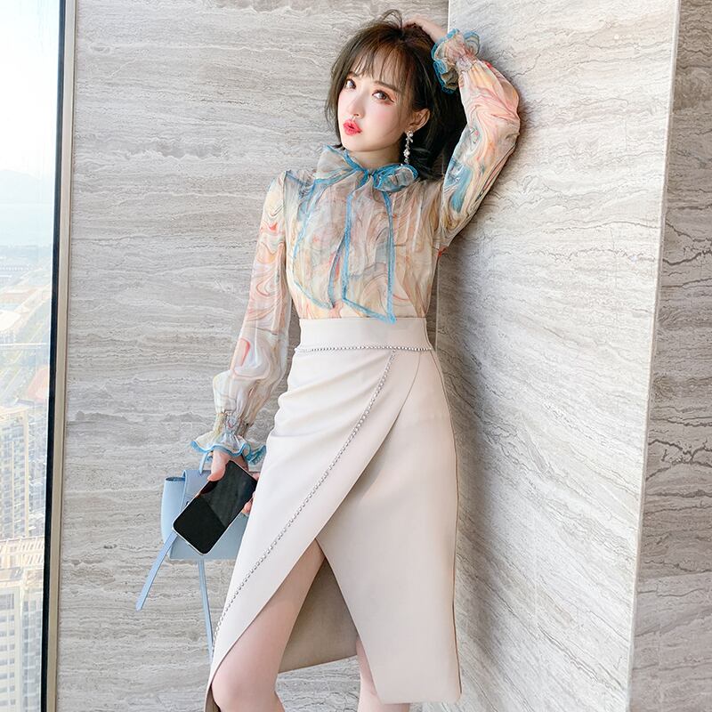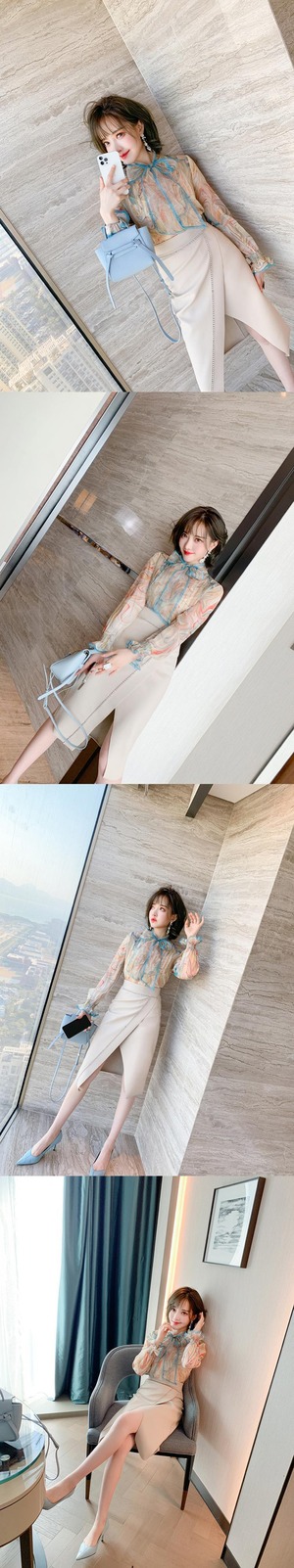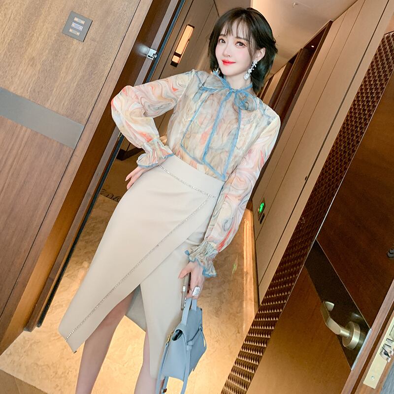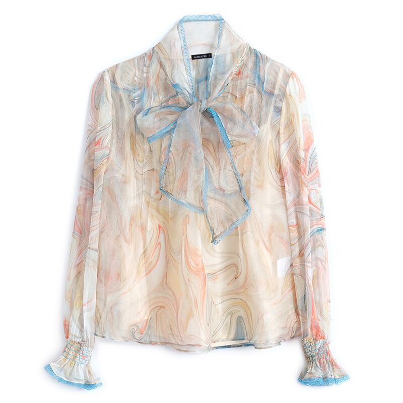 プリントシャツ スプリング リボン 大人ガーリー スウィート キュート カジュアル エレガント 春物 MIUCO19898082213