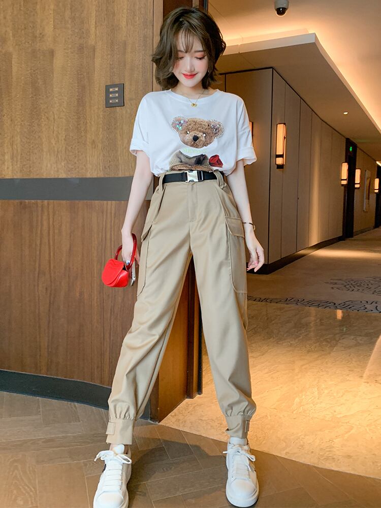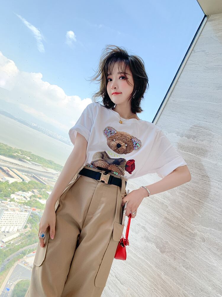 プリント柄ルーズTシャツ オーバーオール サマースタイル 夏物 MIUCO82366740795