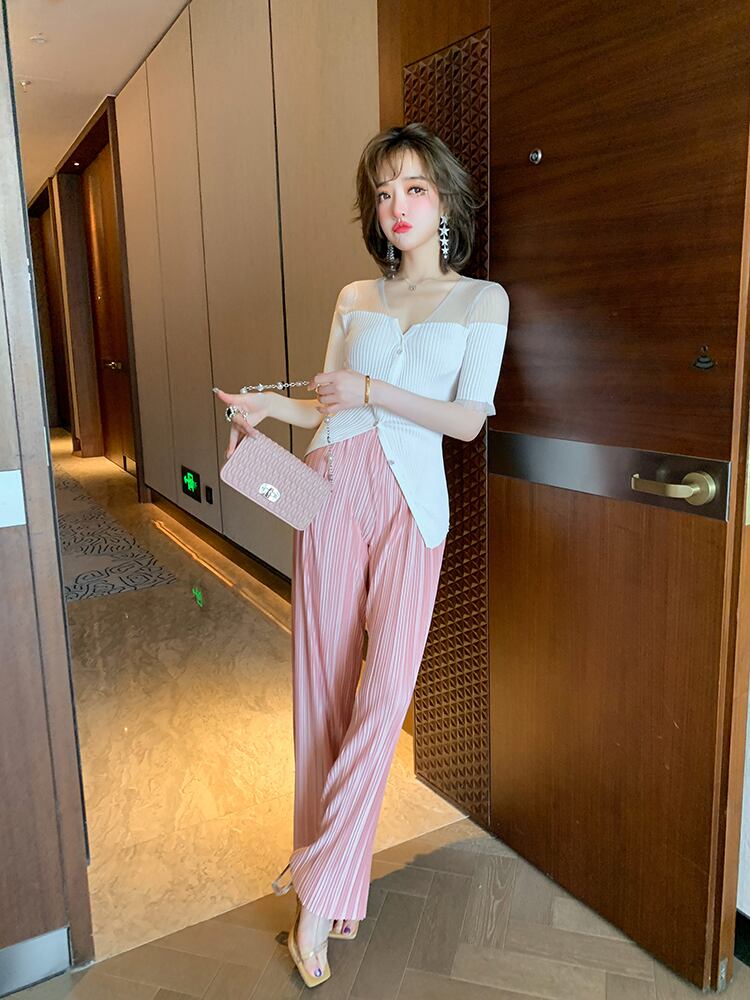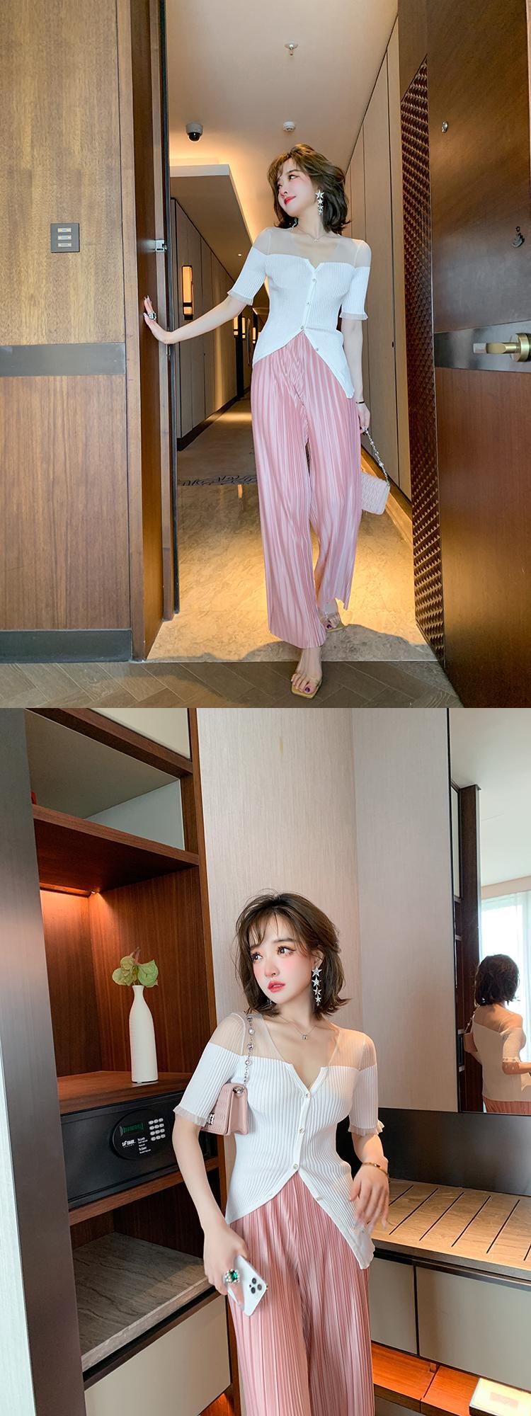 メッシュスリムVネックニットトップス レディースサマースタイル 夏物 MIUCO39444805521