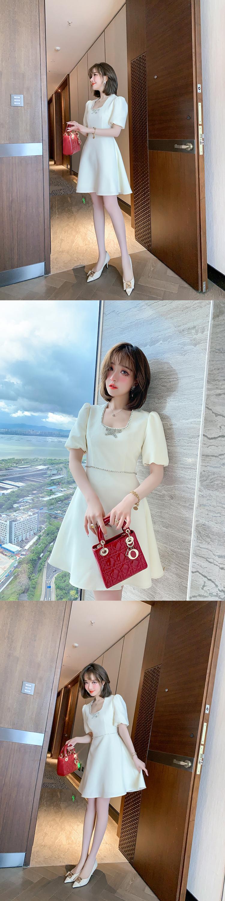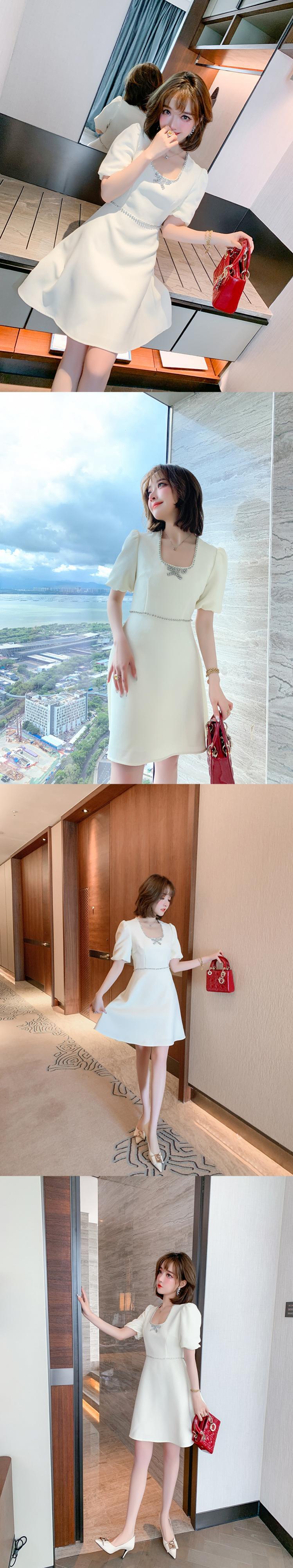 スリーブソリッド カラーAラインドレス サマー 夏物 ソリッドカラー MIUCO78838764891