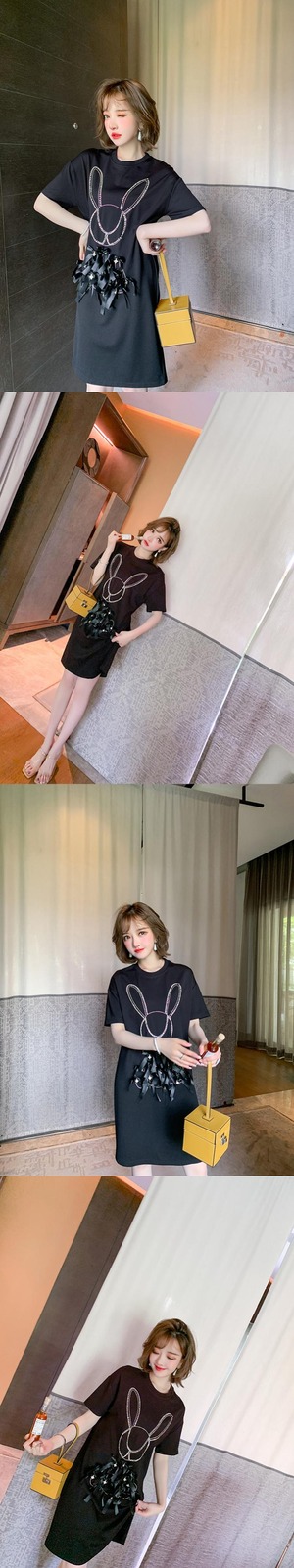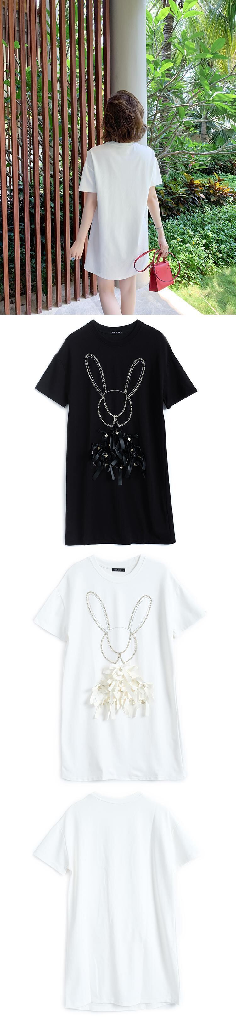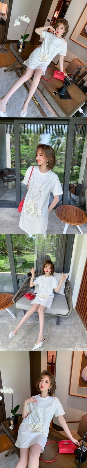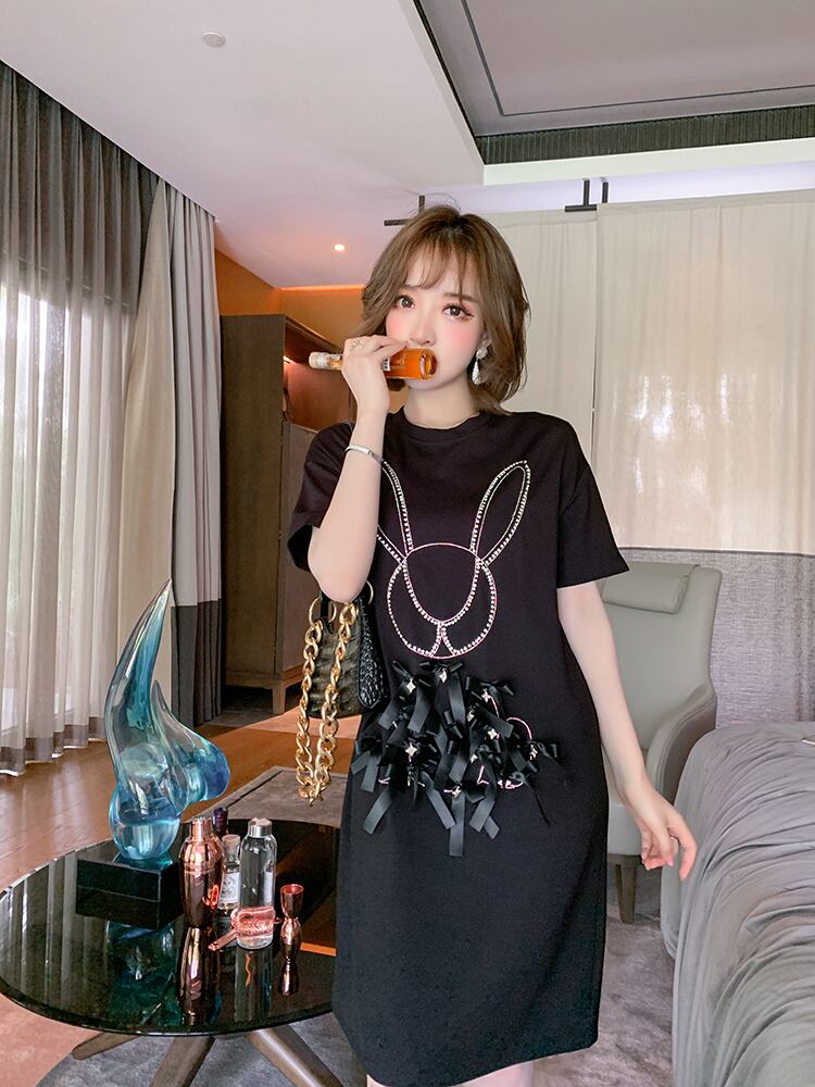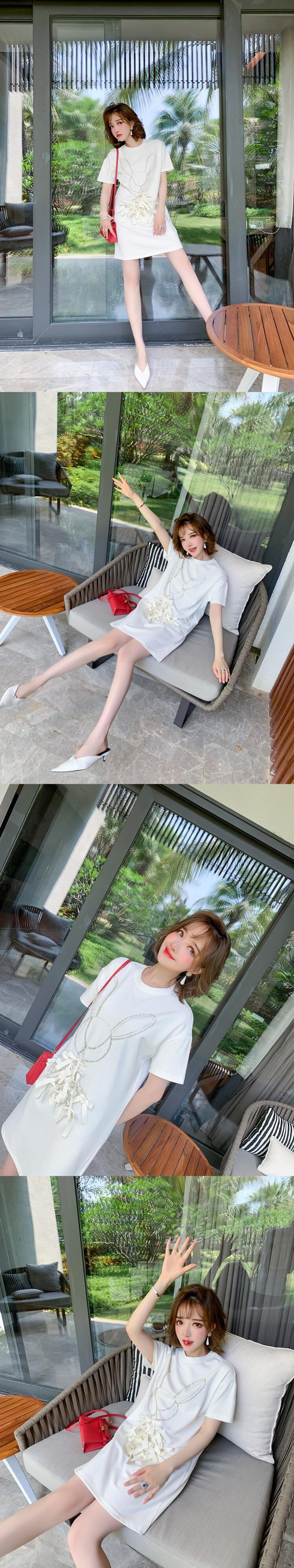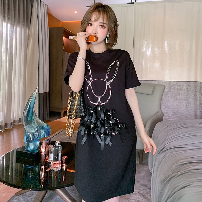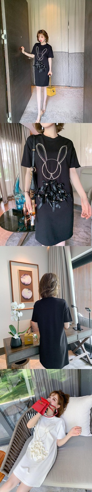 ラウンドネックパターンリボンカジュアルTシャツ ドレス サマー 夏物 Oネック MIUCO38068520658