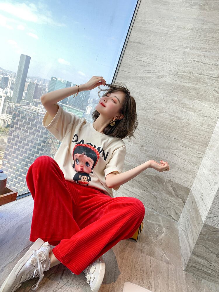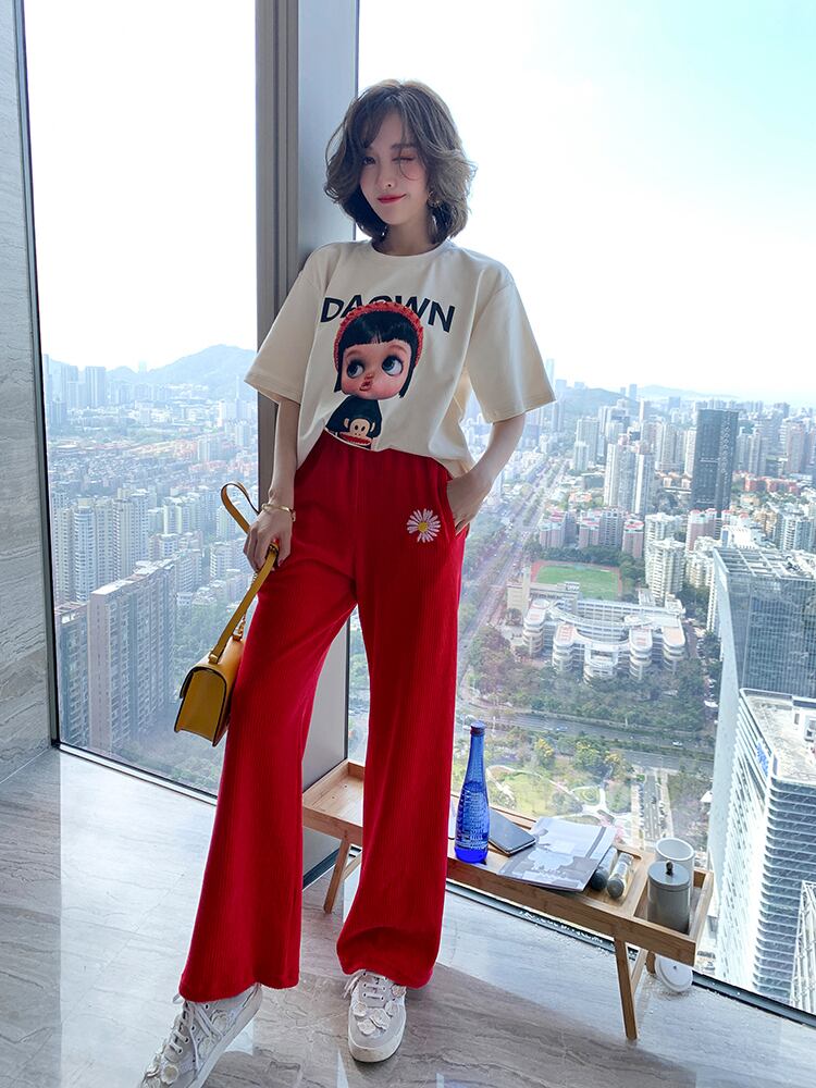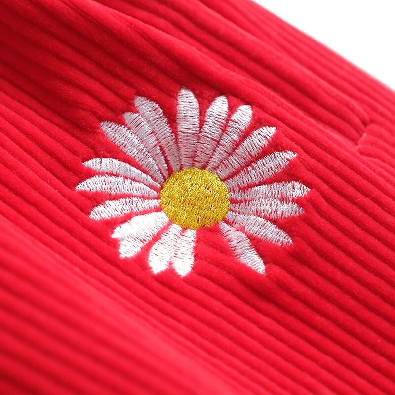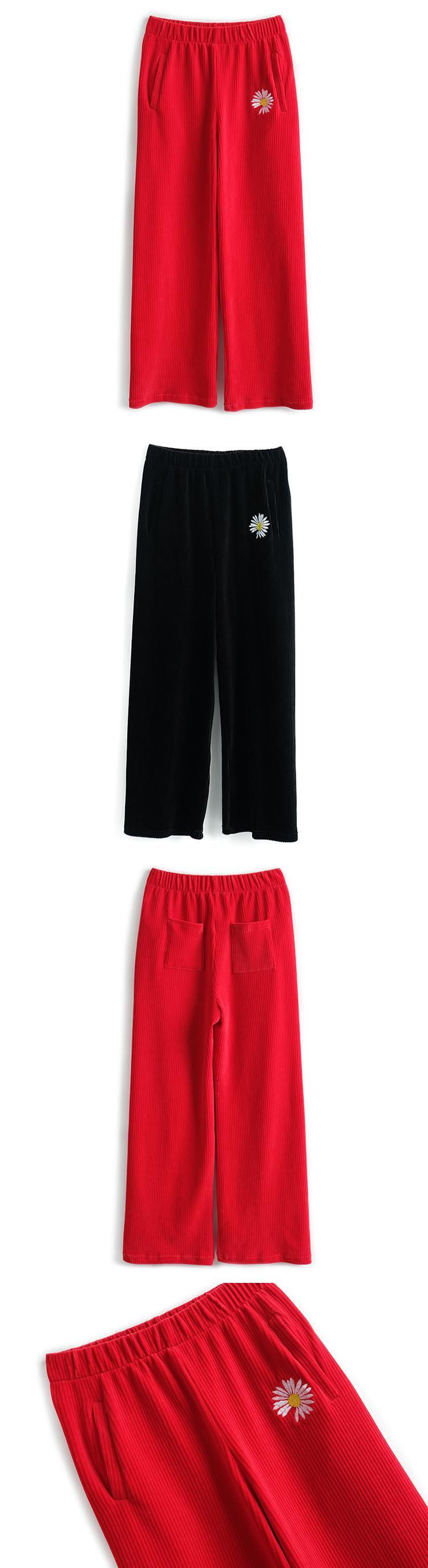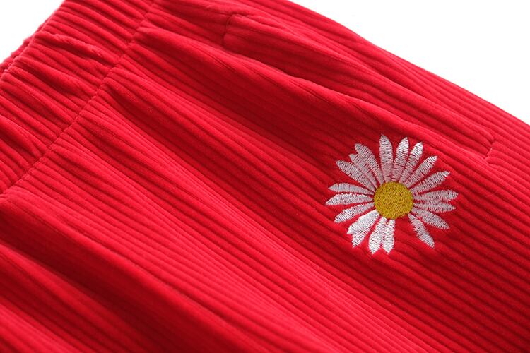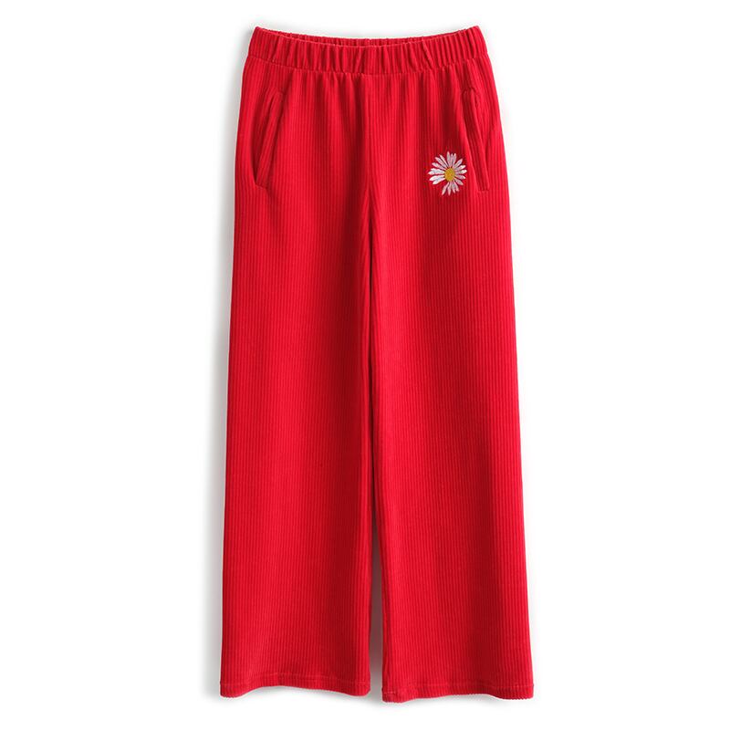ワイドレッグパンツ コーデュロイ薄手スプリング レッド 刺繍 春物 ワイドパンツ MIUCO12776505903