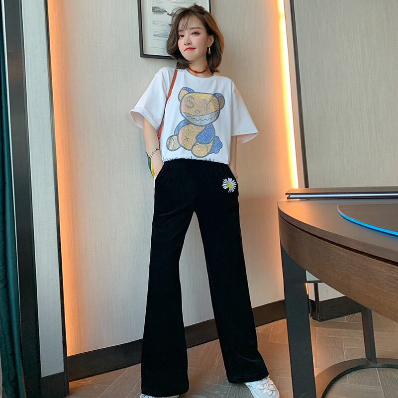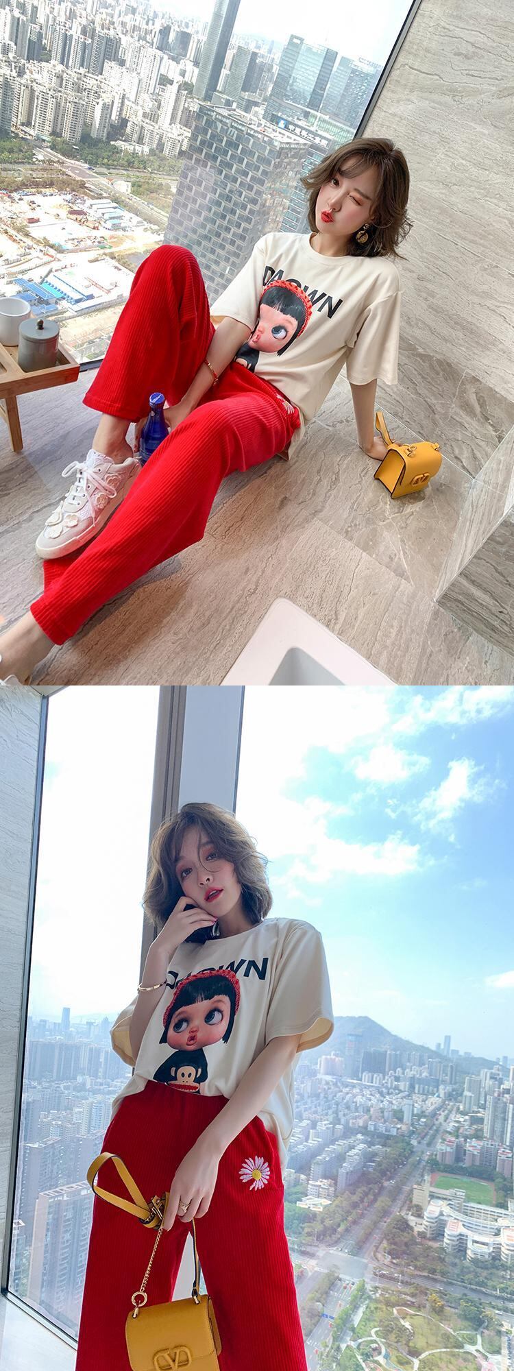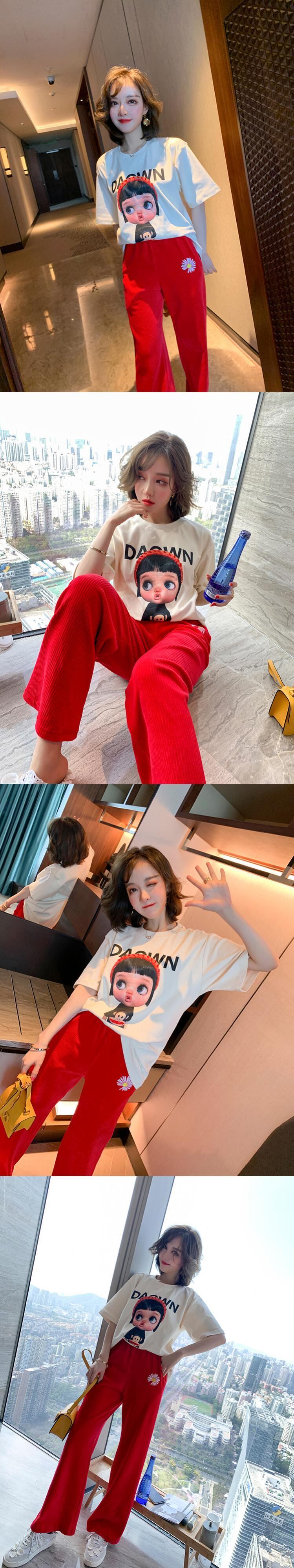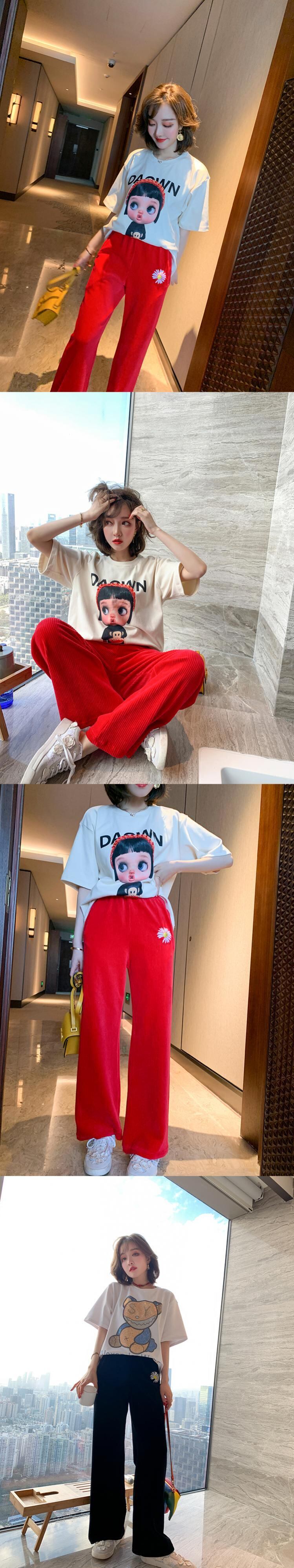 ワイドレッグパンツ コーデュロイ薄手スプリング レッド 刺繍 春物 ワイドパンツ MIUCO12776505903