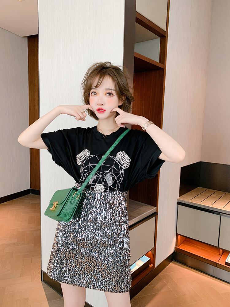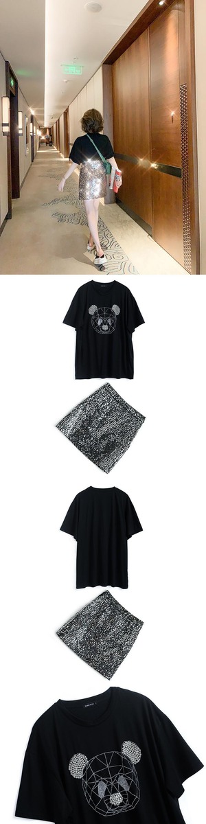 ラウンドネックルーズTシャツ Aラインスカート サマースタイル 夏物 Oネック MIUCO92776026329