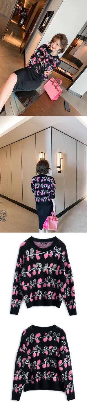 ラウンドネックプルオーバー ルーズセーター オータムウィンター 秋物 冬物 Oネック MIUCO29505832442