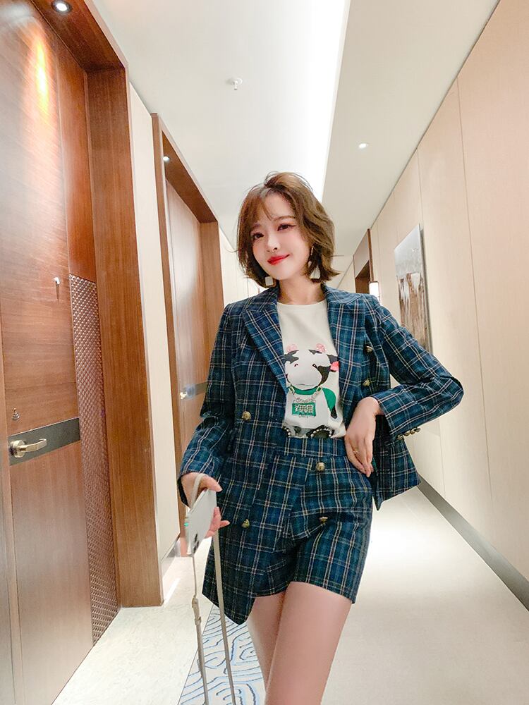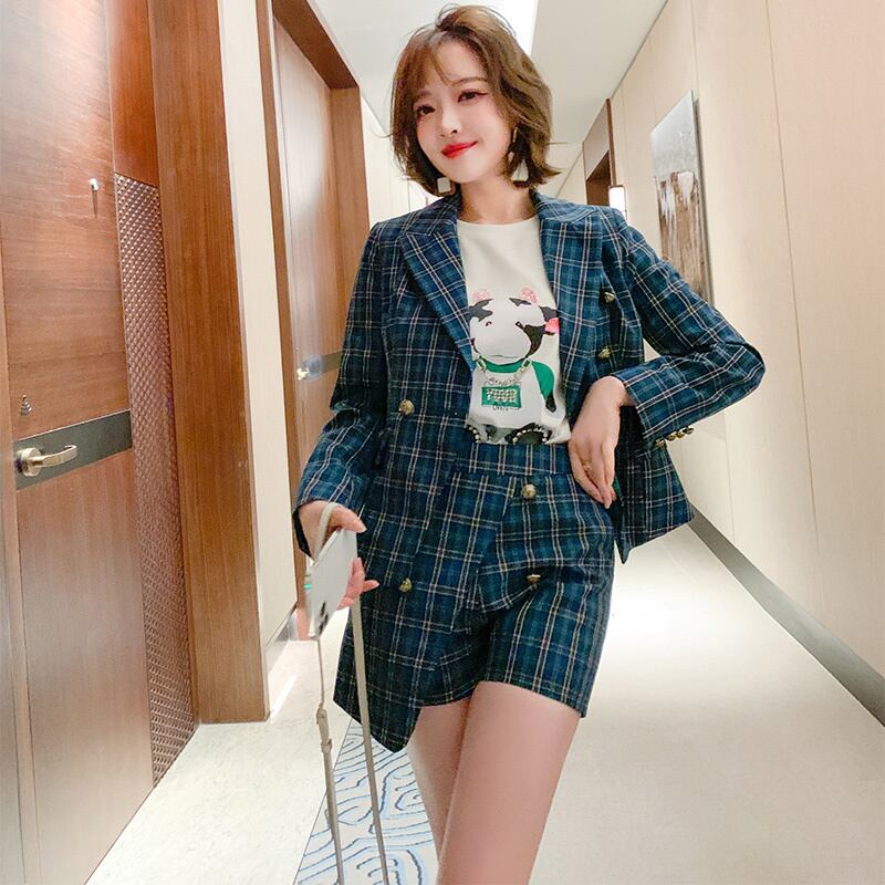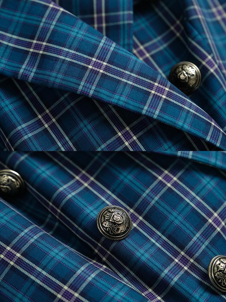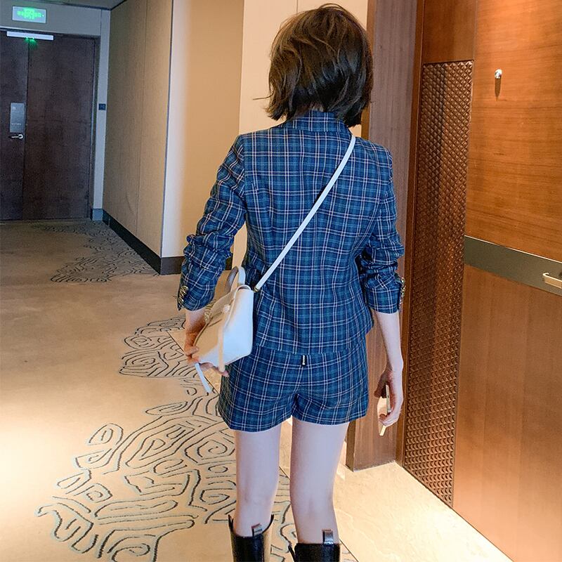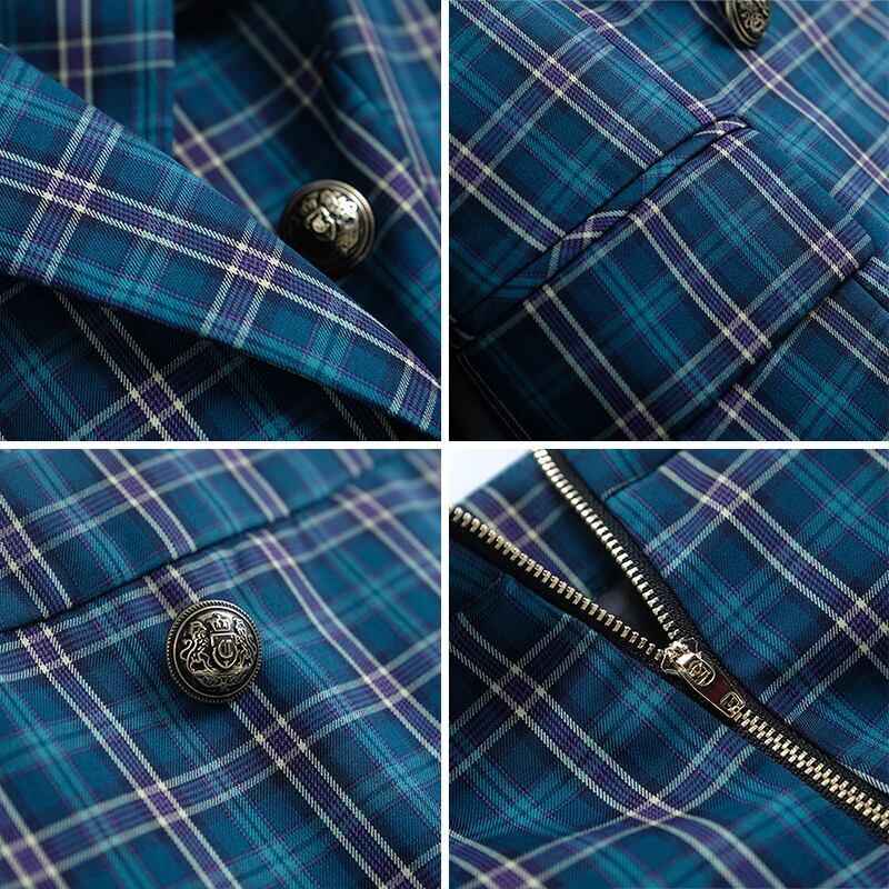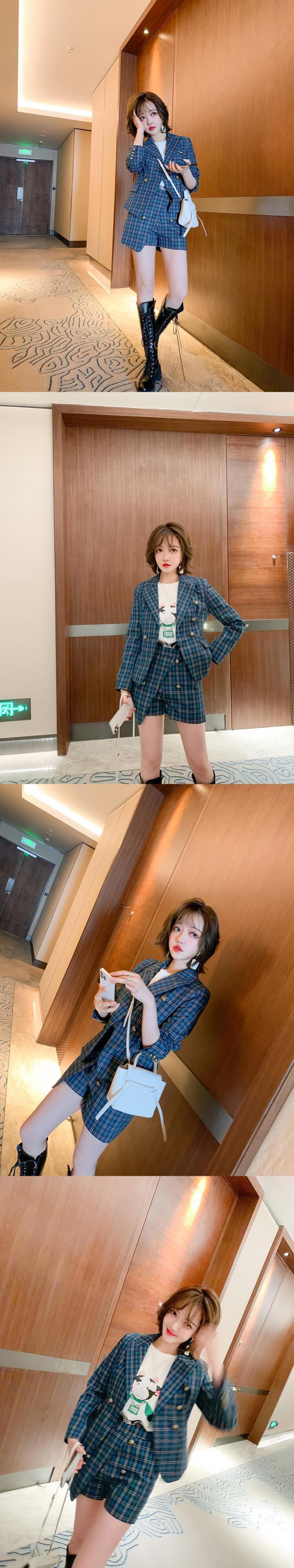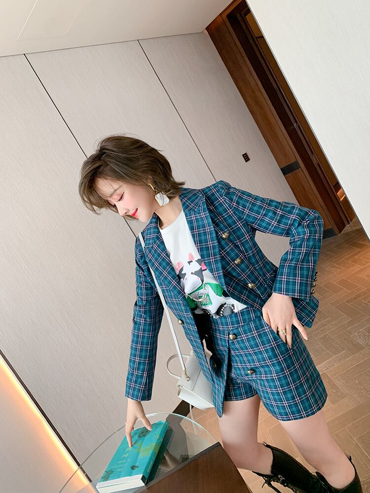 スタンダード格子柄ダブルブレストウェストブレザー スカート パンツ スプリング レトロ 春物 MIUCO13529706524